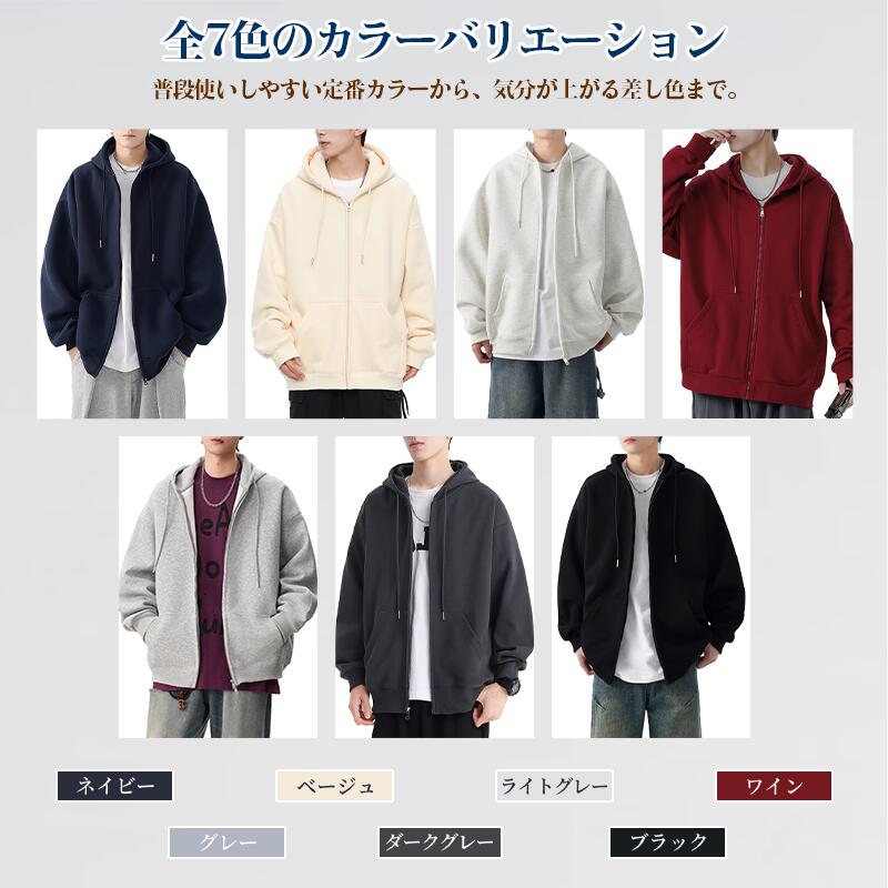 パーカー メンズ ジップパーカー レデ トップス パーカー 続々登場 裏起毛 裏起毛なし ブラック ネイビー ダークグレー グレー ライトグレー ワイン ベージュ