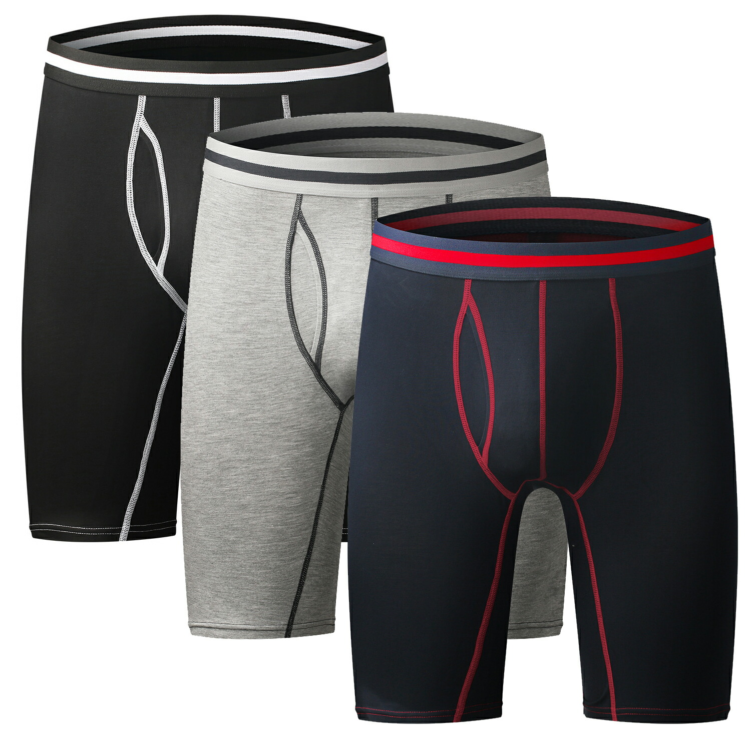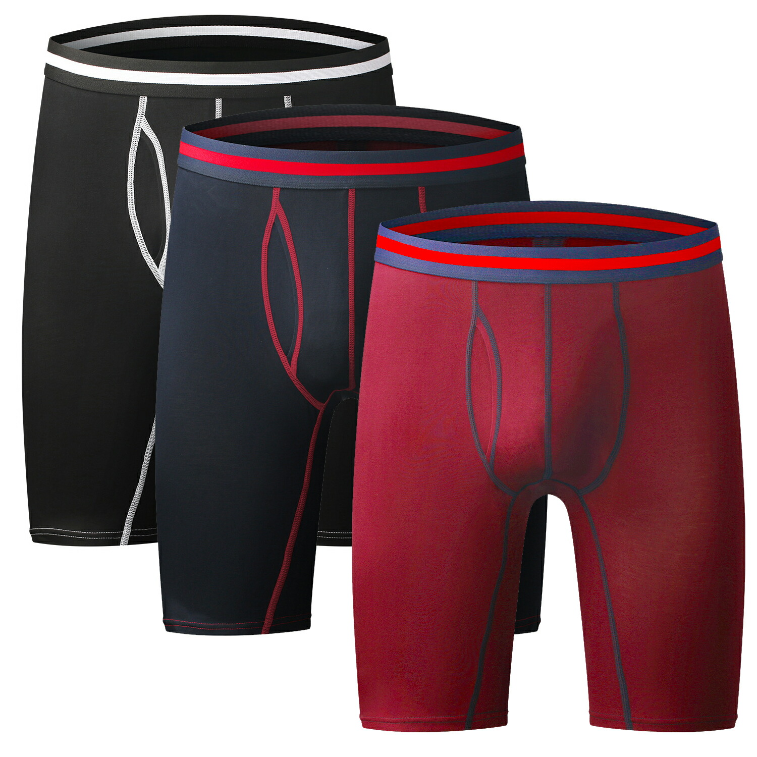 ボクサーパンツ メンズ 前開き ロング インナー 下着 ナイトウエア 通販 黒+紺+薄い灰 黒+紺+ワイン M L XL 2XL 3XL