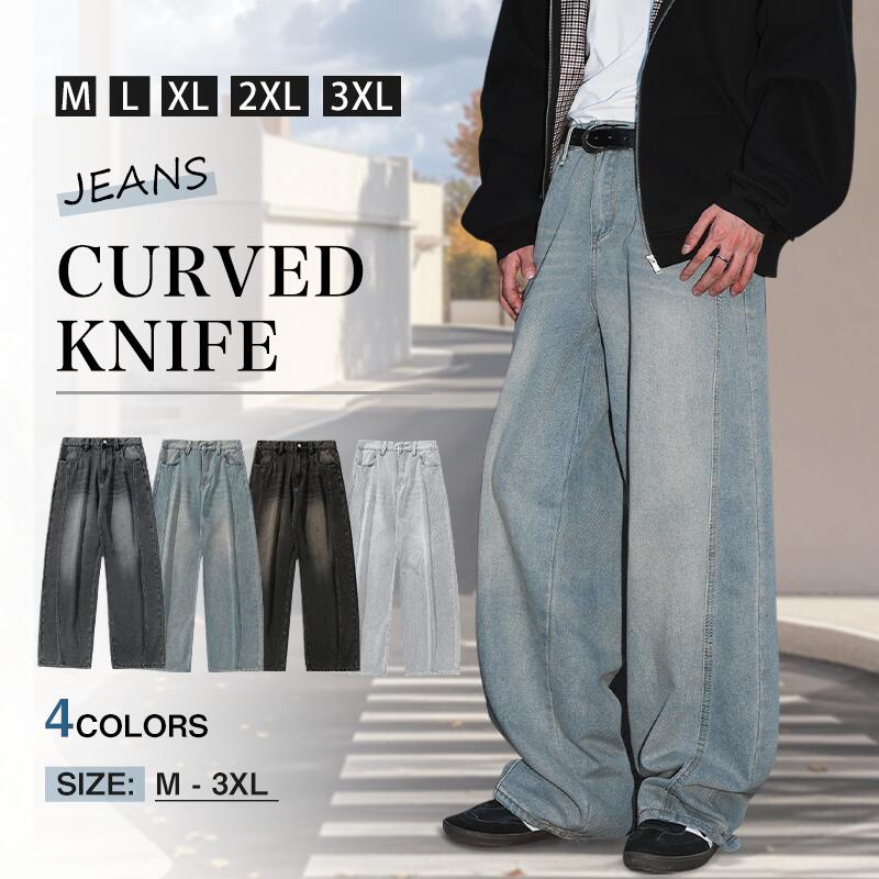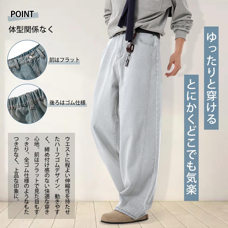 デニムパンツ メンズ ズボン ワイドパ メンズファッション 早い者勝ち ブルー グレー ライトグレー ブラック 純黒 M L XL 2XL 3XL