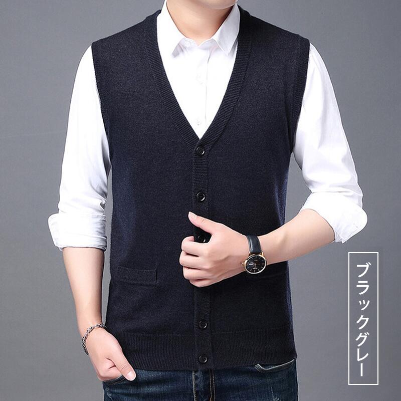 ベスト メンズ ニットベスト 秋冬 前 トップス ベスト ジレ 豊富 ブラックグレー ダークグレー ライトグレー コーヒー M L XL 2XL 3XL