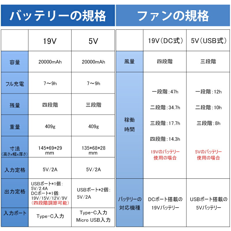 20000mAhの大容量バッテリー選択可能、長時間稼動可能ですので長時間の屋外作業でも安心です。