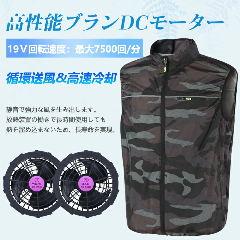 空調ベスト 19V 大きいサイズ 130KG対応 迷彩 20000mAhバッテリー PSE認証 ファン空調 服 空調ウェア ファン付きウェア ファン付きベスト 9CM UVカット ファン付き 大風量