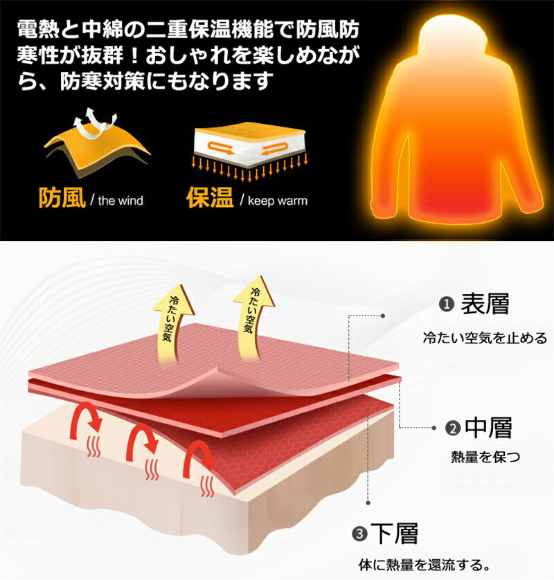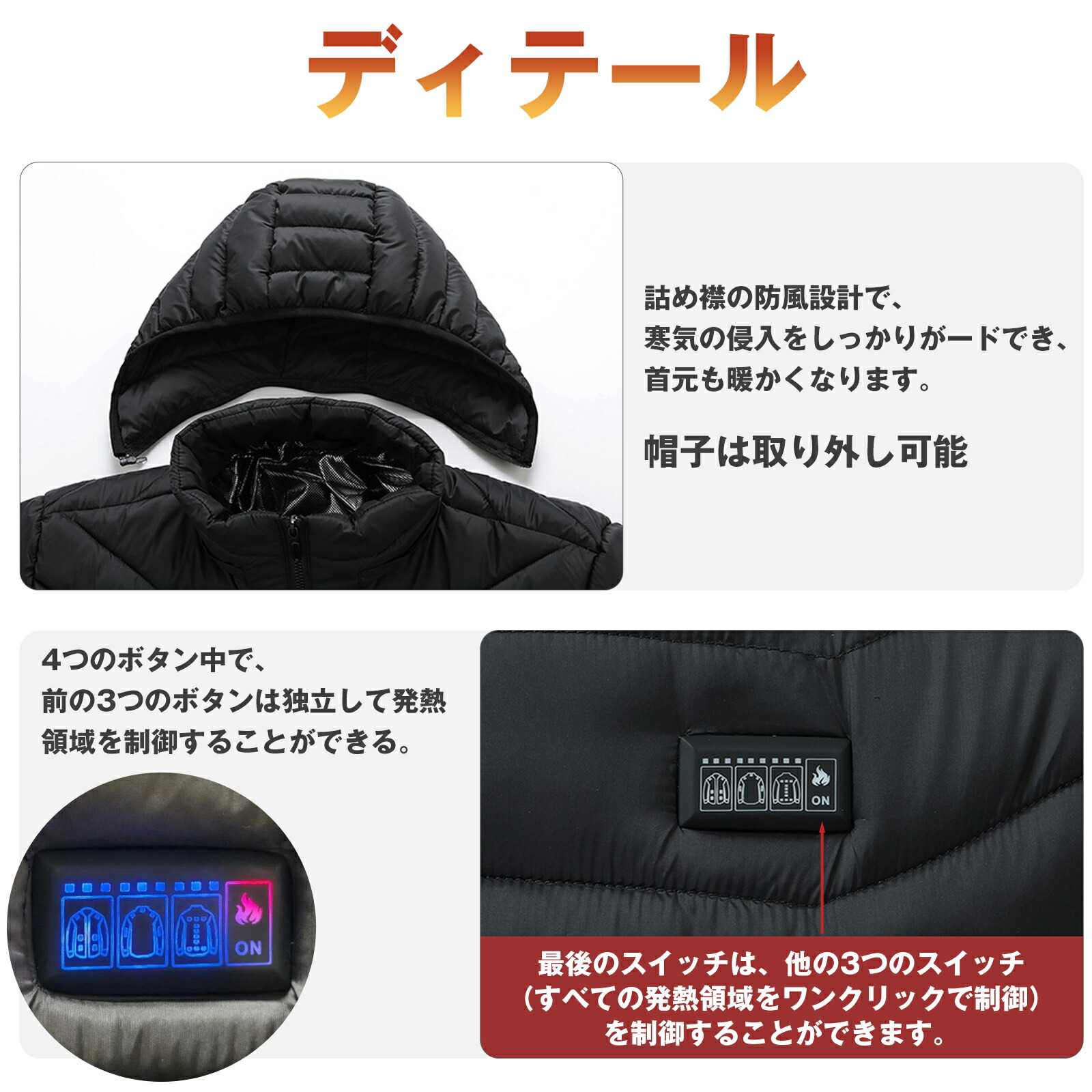 電熱ジャケット 大きいサイズ 40~1 メンズファッション 新作 ブラック(バッテリーなし) ネイビー(バッテリーなし) ブラック(2万mAhバッテリー付き) ネイビー(2万mAhバッテリー付き) M L XL 2XL 3XL