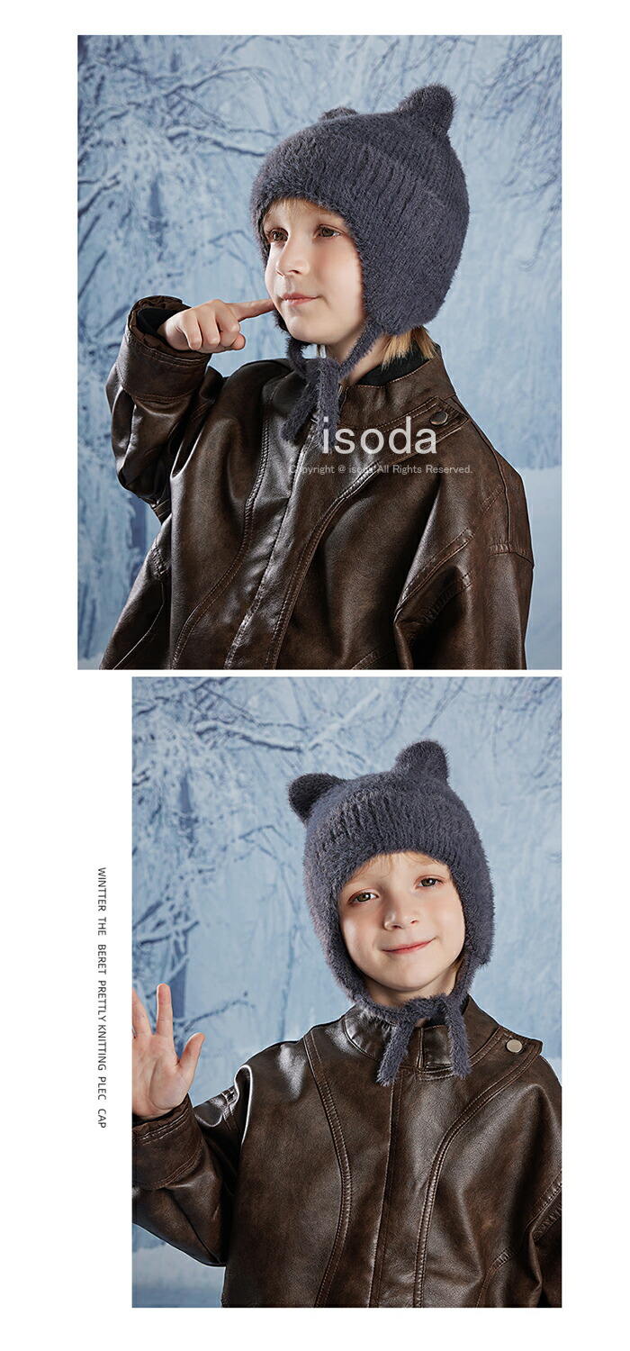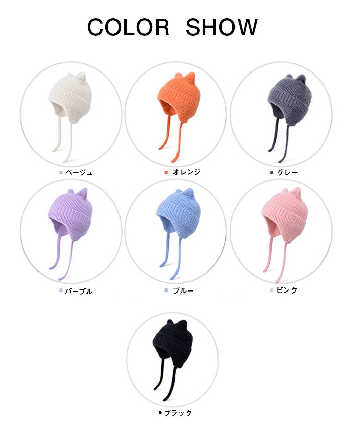 ニット帽 キッズ 耳当て ネコ耳 男の キッズ ベビー マタニティ 新登場! ベージュ ブラック グレー パープル ブルー ピンク