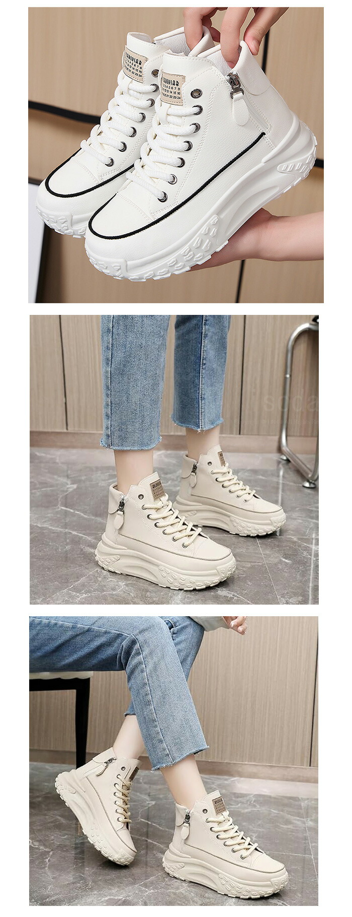 厚底 スニーカー レディース レディー 靴 人気 ホワイト ベージュ ブラック 37#(約23.5~24.0CM 適用程度) 38#(約24.0~24.5CM 適用程度) 39#(約24.5~25.0CM 適用程度) 40#(約25.0~25.5CM 適用程度) 41#(約25.5~26.0CM 適用程度) 42#(約26.0~26.5CM 適用程度)