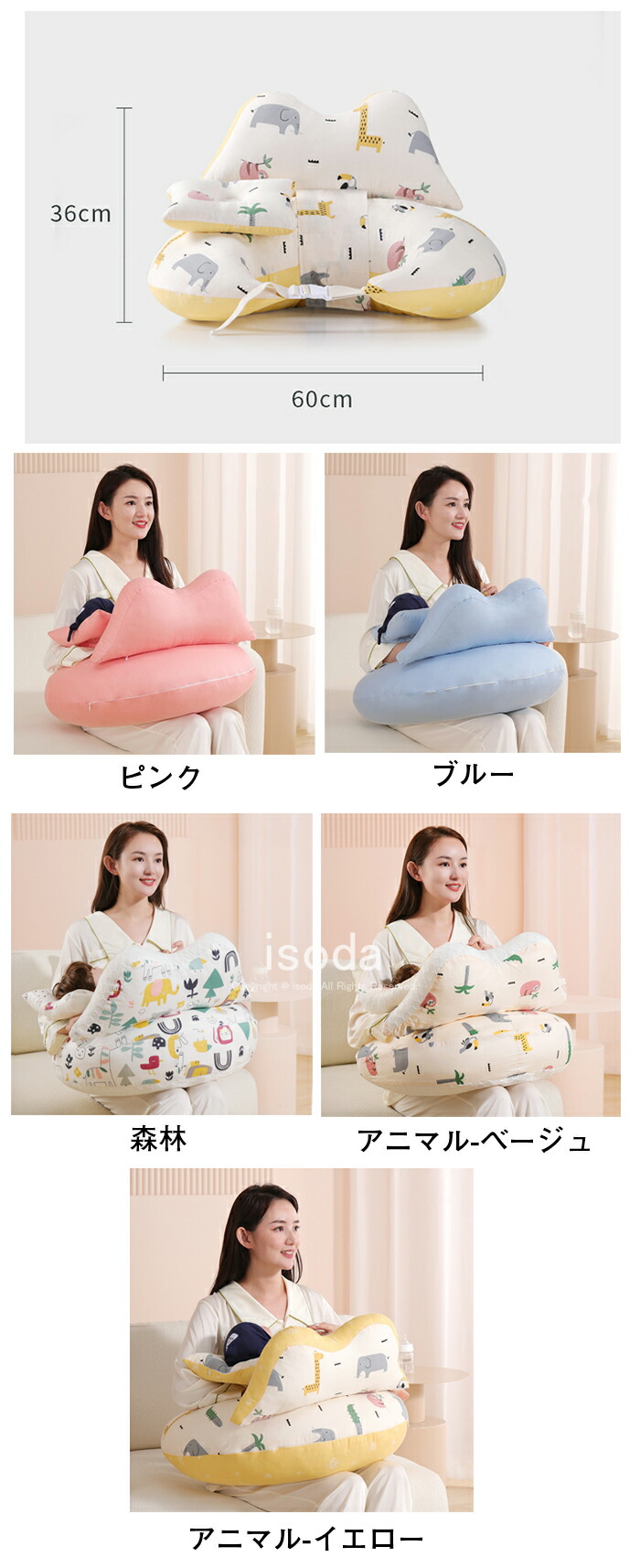 授乳クッション 授乳枕 ベビークッショ キッズ ベビー マタニティ 人気 ピンク ブルー 森林 アニマル-ベージュ アニマル-イエロー