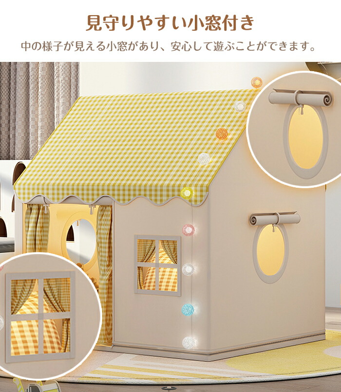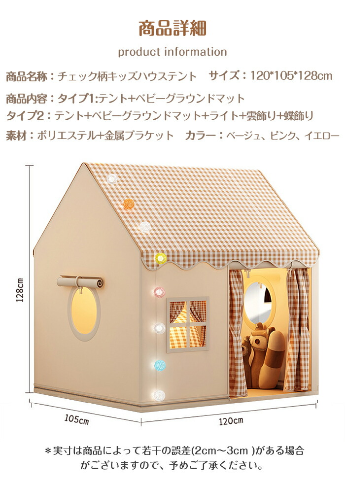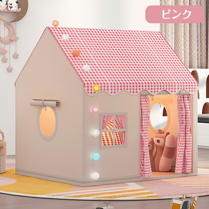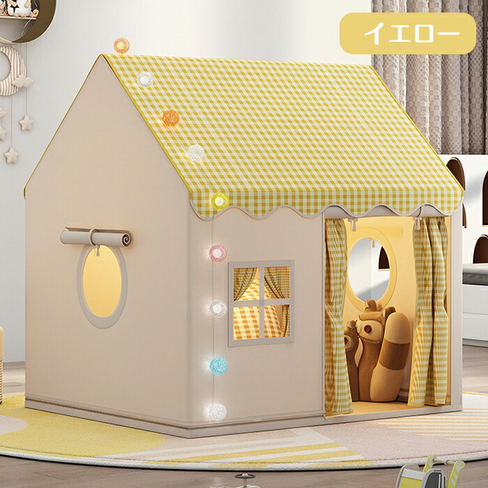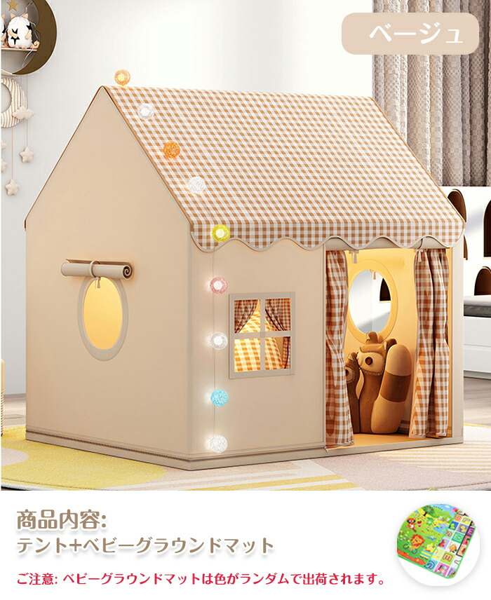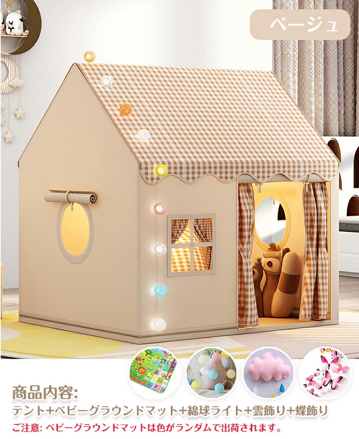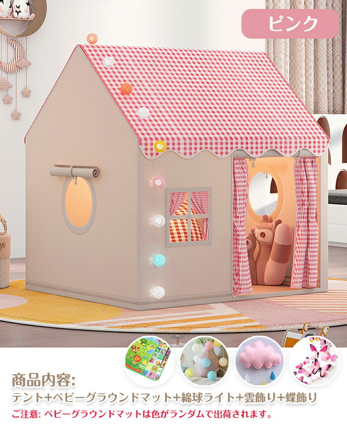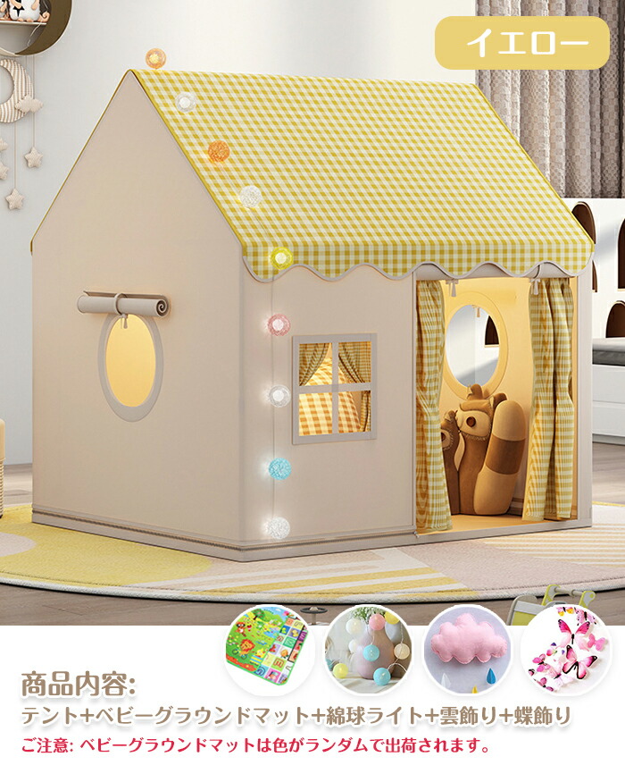 キッズテント 室内テント 収納袋付き おもちゃ スポーツトイ アクショントイ 大型遊具 プレイハウス テント 通販 ベージュ ピンク イエロー テント+マット テント+マット+綿球ライト+飾り物