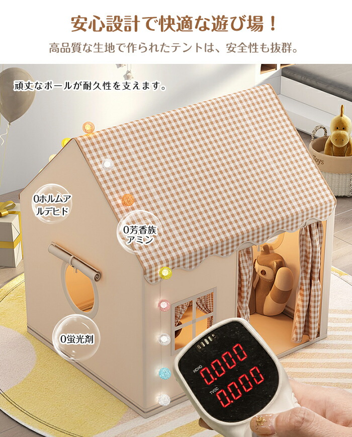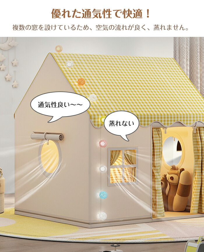 高品質な通気性素材を使用しているため、いつでも涼しく快適です。優れた通気性と空気の対流により、お子様は蒸れることなく楽しく遊ぶことができます。頑丈なテントポールは安全性も考慮されており、安心してお使いいただけます。