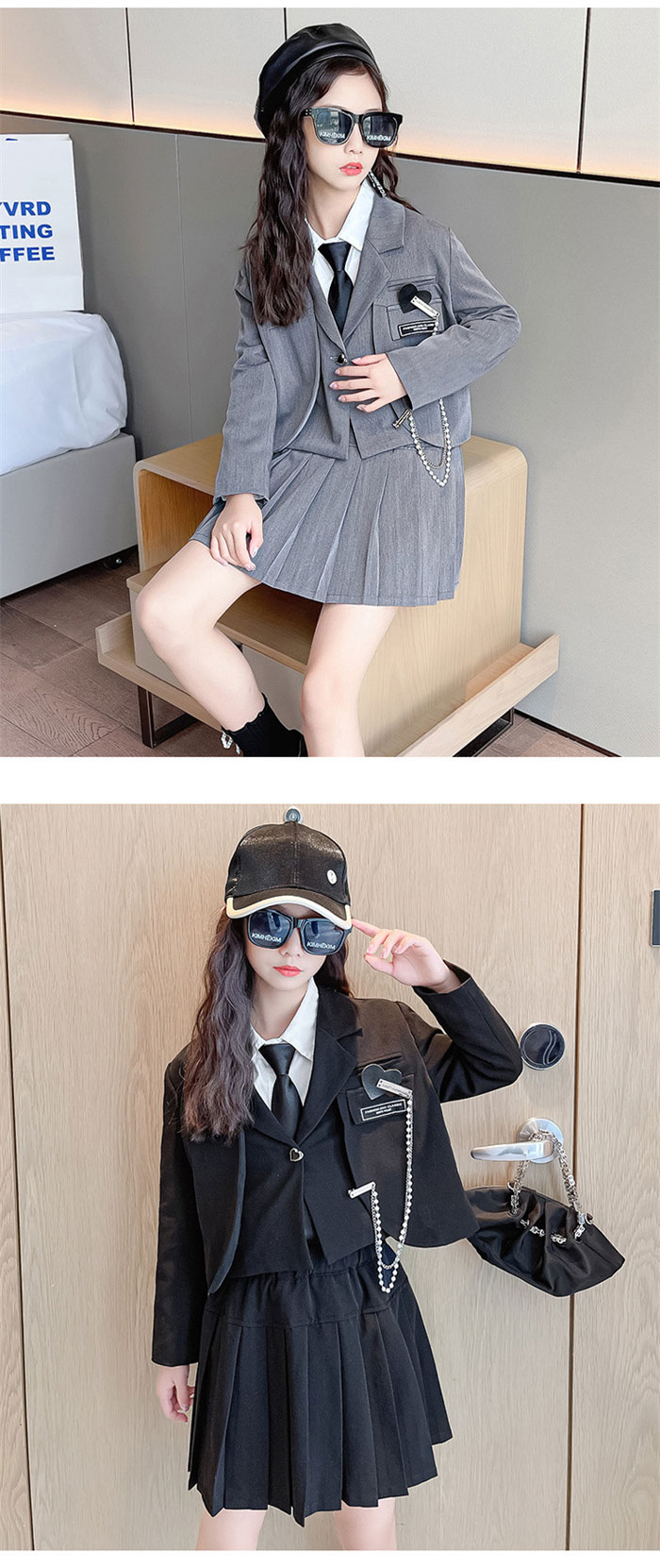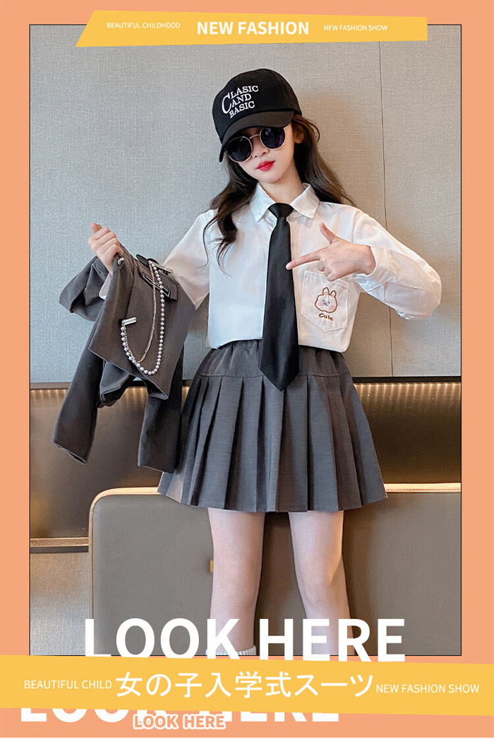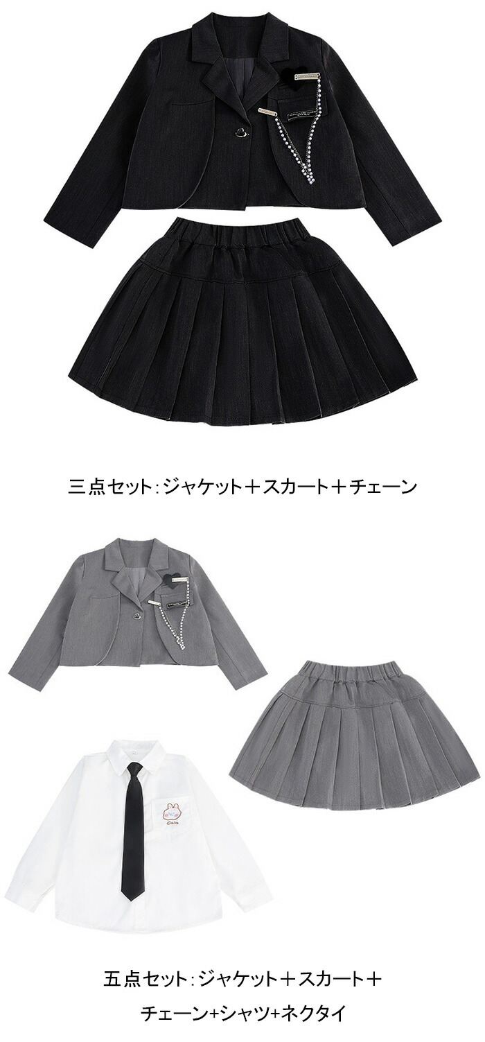 入学式 スーツ 女の子 卒業式 大きい キッズ スーツ カジュアルセットアップ カジュアルスカートセット 続々入荷中 三点セット-ブラック 三点セット-グレー 五点セット-ブラック 五点セット-グレー 110CM 120CM 130CM 140CM 150CM 160CM 170CM