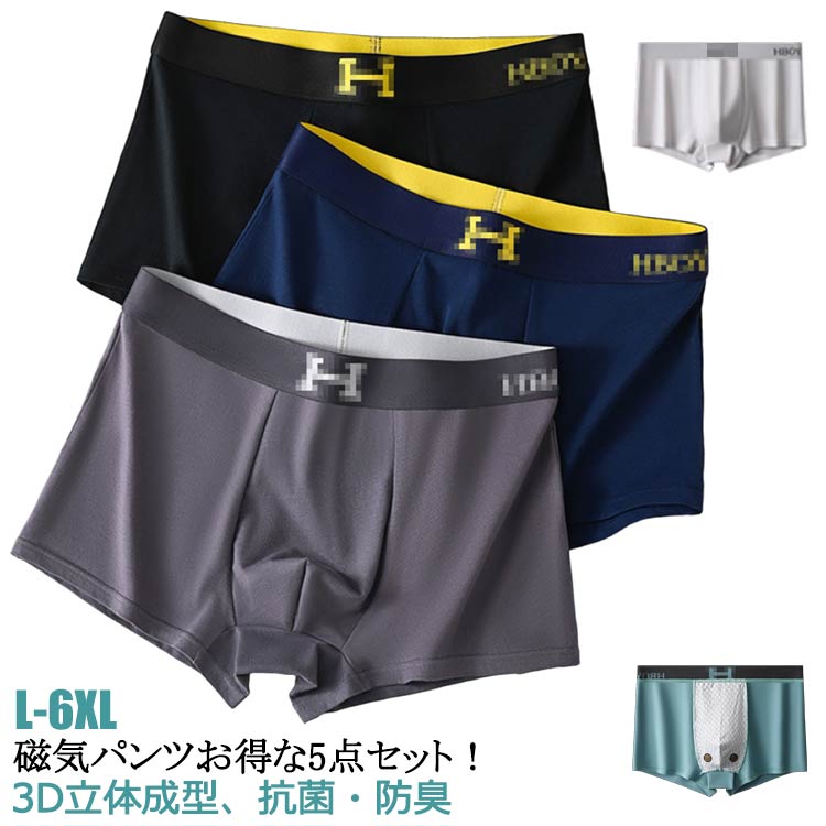 5枚組 メンズ 下着 磁気パンツ ボク インナー 下着 ナイトウエア 通販 L XL 2XL 3XL 4XL 5XL 6XL