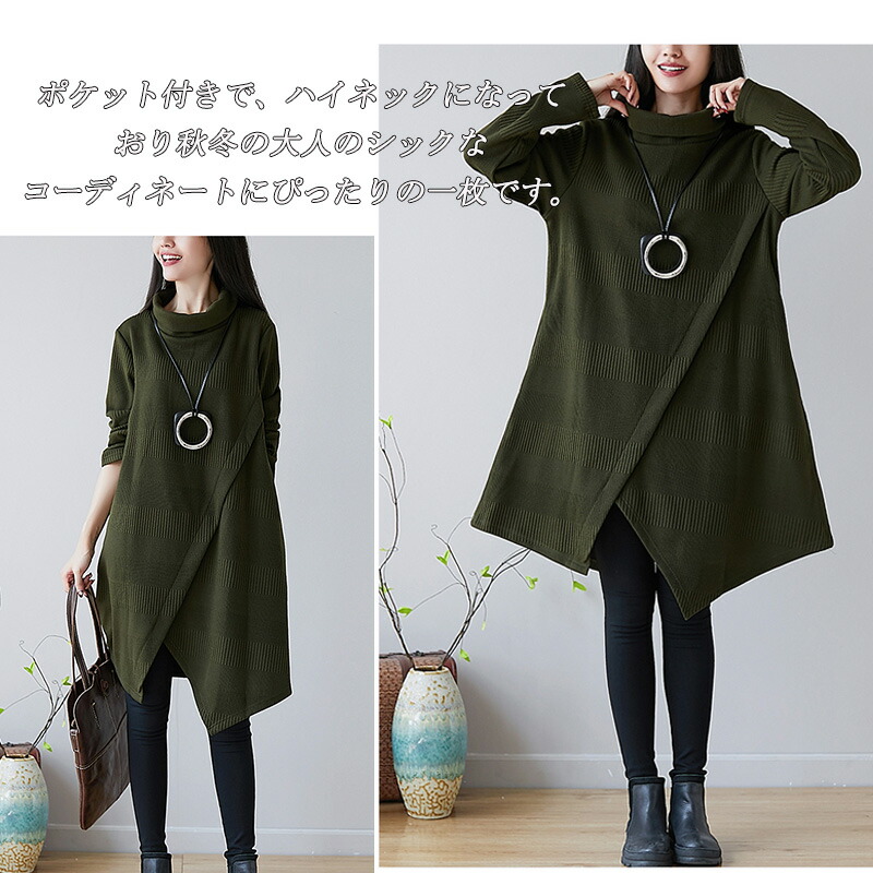 チュニック ワンピース レディース 長 レディースファッション 新登場! ワイン グリーン M L XL 2XL
