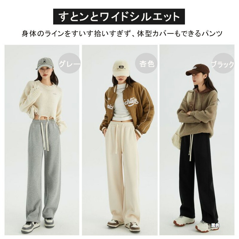 ワイド カーブパンツ レディース パン レディースファッション 続々登場 ブラック グレー 杏色 M L XL 2XL