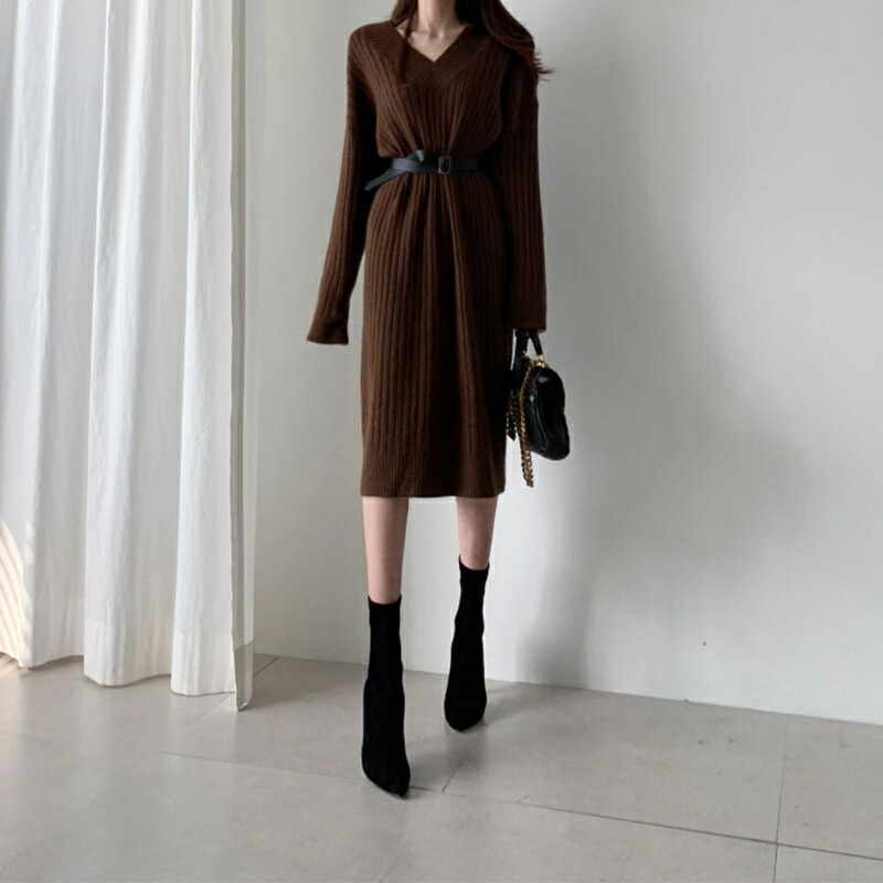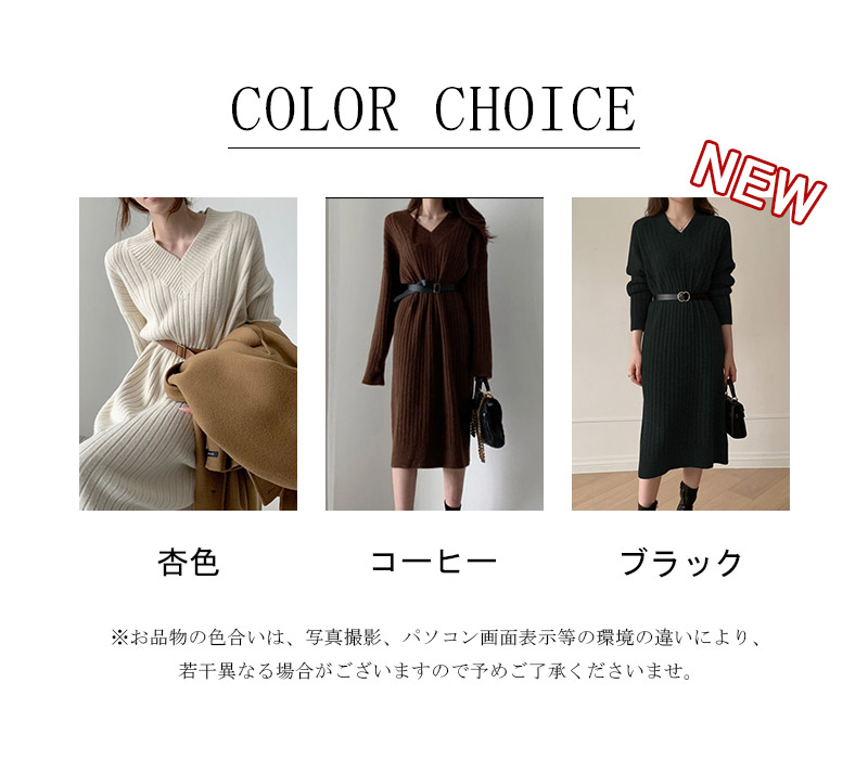 ニット ワンピース 冬 ロング丈 ニッ ワンピース 新登場! コーヒー 杏色 ブラック