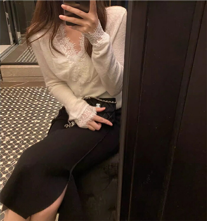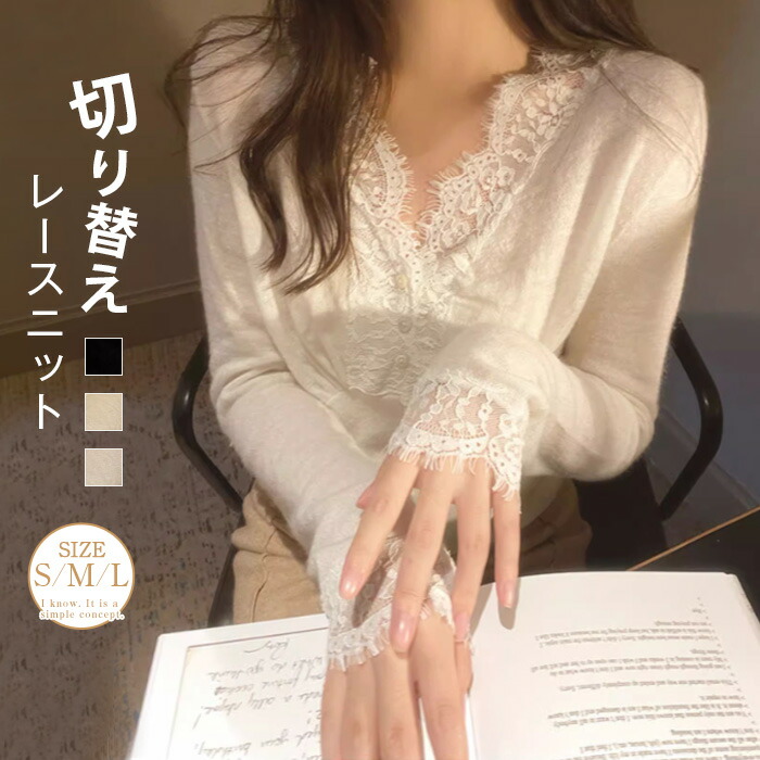 レースインナー ニット レース 重ね着 レディースファッション 早い者勝ち ブラック ベージュ ホワイト S M L