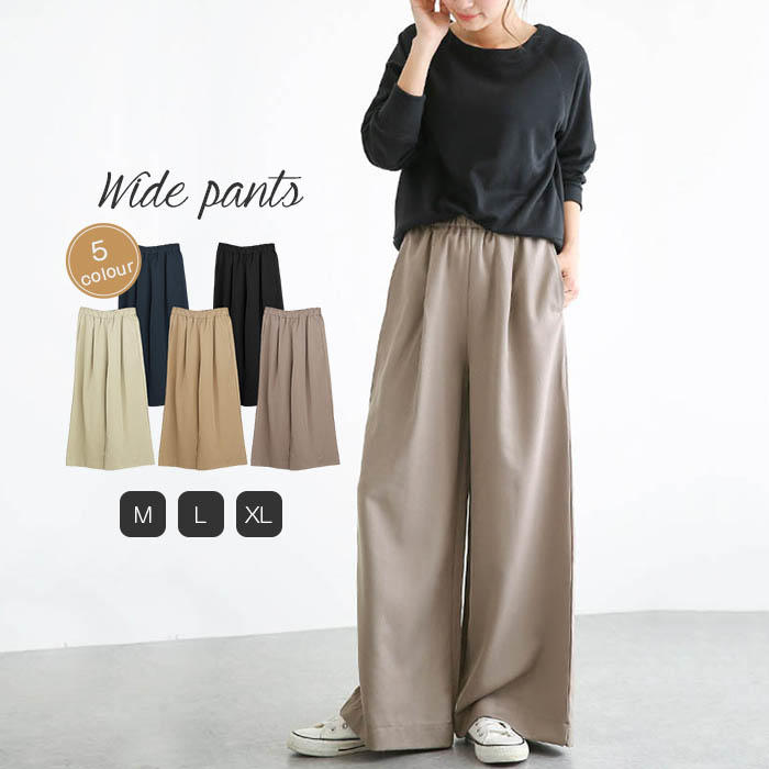 ワイドパンツ 秋 秋冬 レディース ロ ボトムス パンツ 続々登場 ブラック ベージュ ネイビ グレー キャメル M L XL