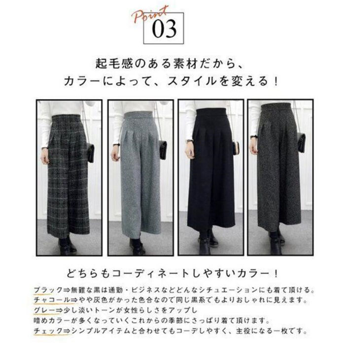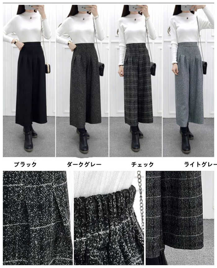 ワイドパンツ レディース ワイド ロン ボトムス パンツ 超目玉商品 ブラック ダークグレー ライトグレー チェック M L XL