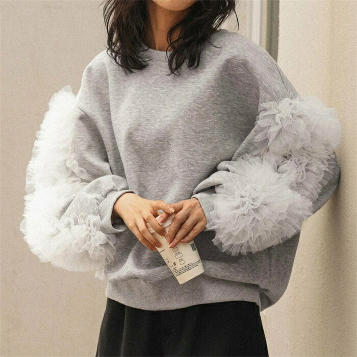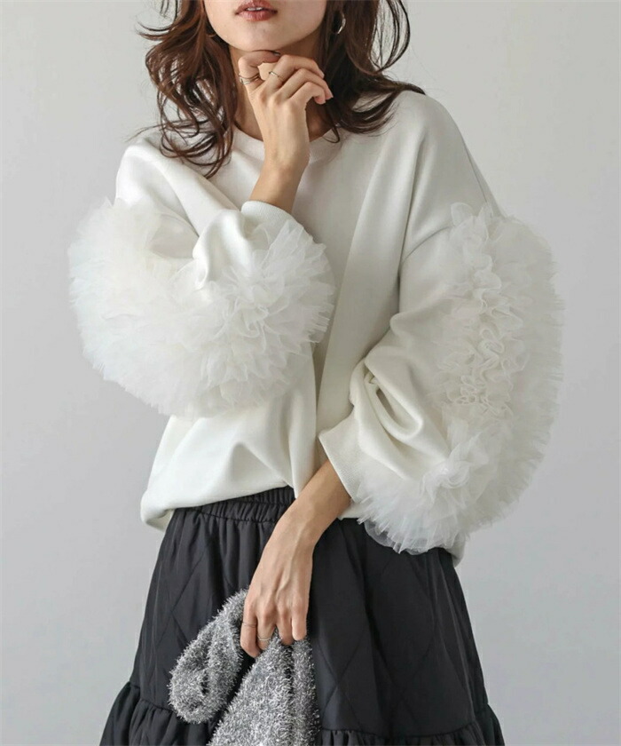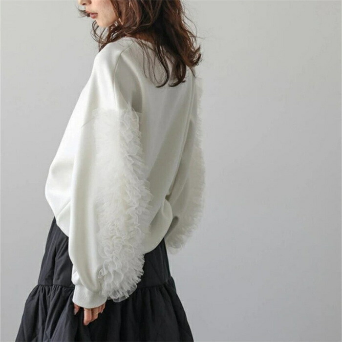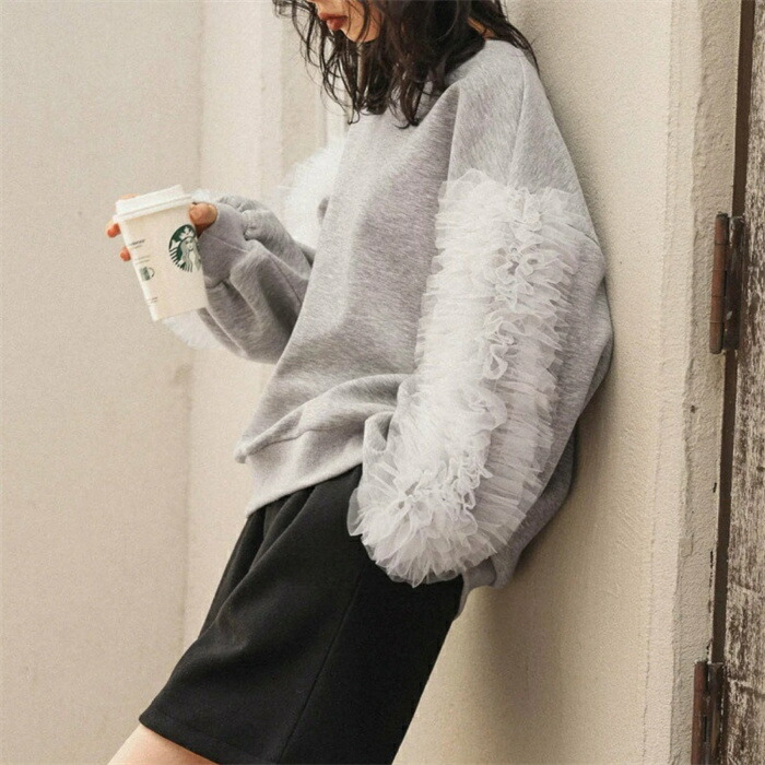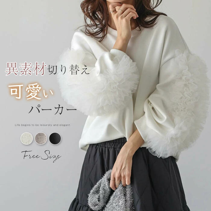 トレーナー レディース 秋冬 異素材切 トップス スウェット トレーナー 特集 黒 グレー ホワイト