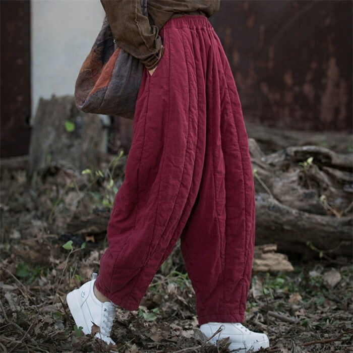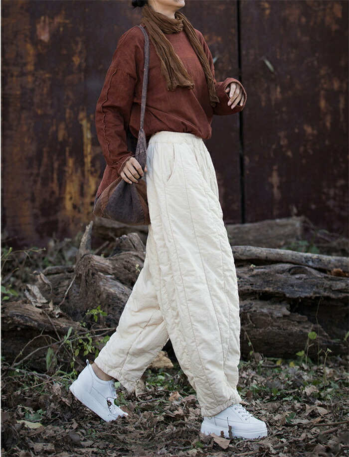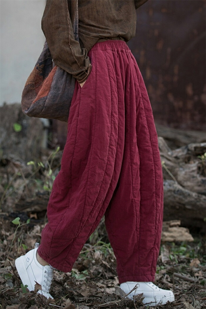 キルティングパンツ テーパードパンツ レディースファッション 新登場! ブラック レッド オフホワイト L XL 2XL