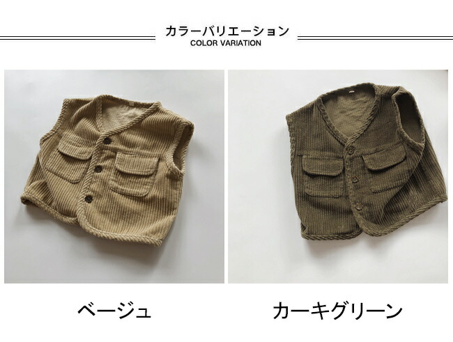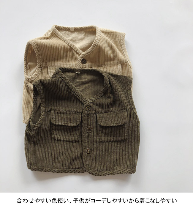 子供服 キッズ ベスト 前開き コーデ キッズ トップス ベスト 新登場! 80 90 100 110 120 130 ベージュ カーキグリン