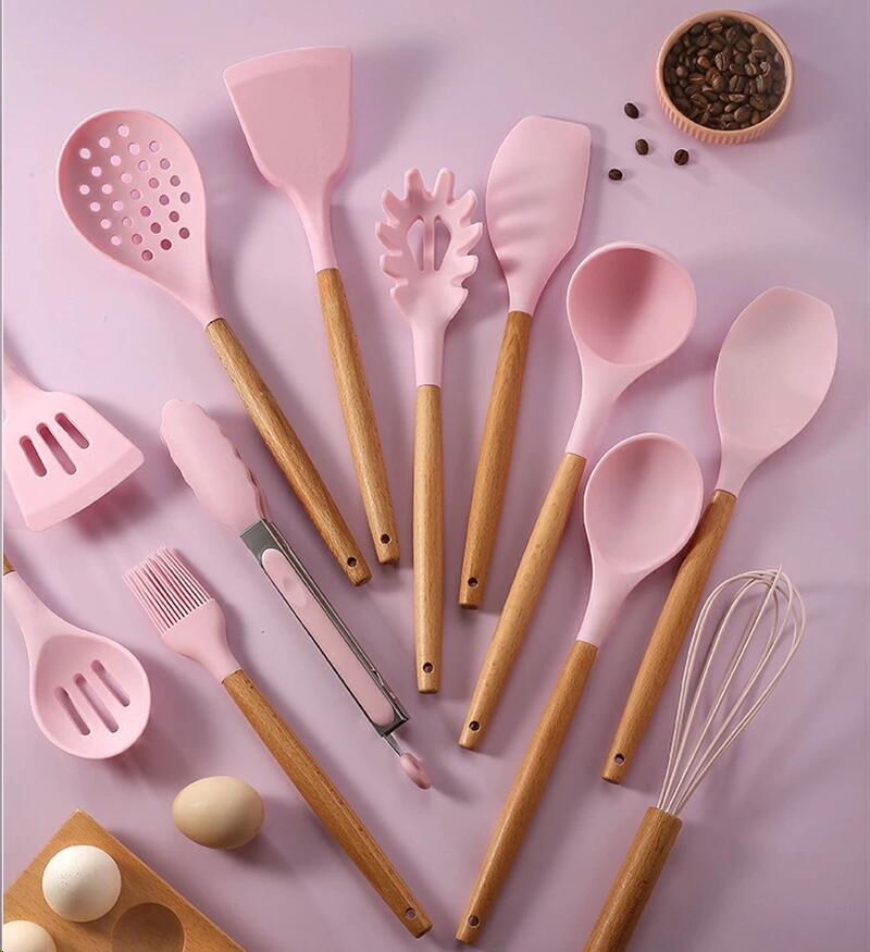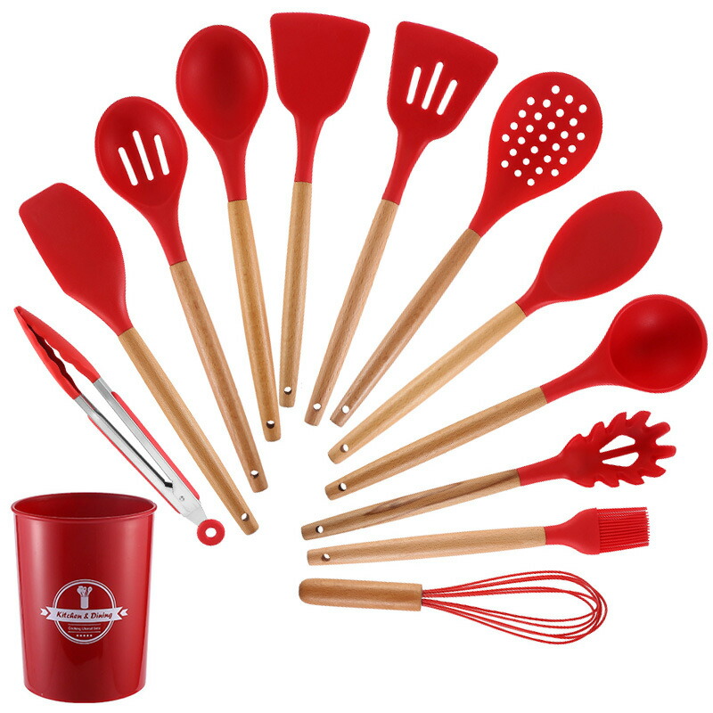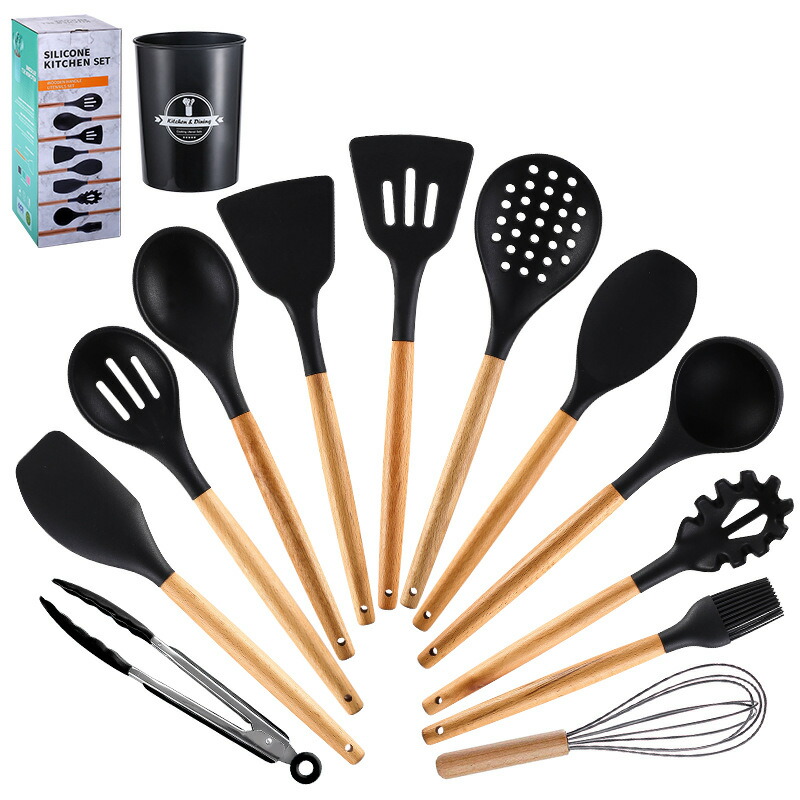 収納容器付き 木製キッチンツール 12点セット 調理器具 キッチンツールセット 製菓器具 耐熱シリコン製 クッキングツール キッチンツール用品 収納バッグ付き 台所用品 料理 フライ返し 器具