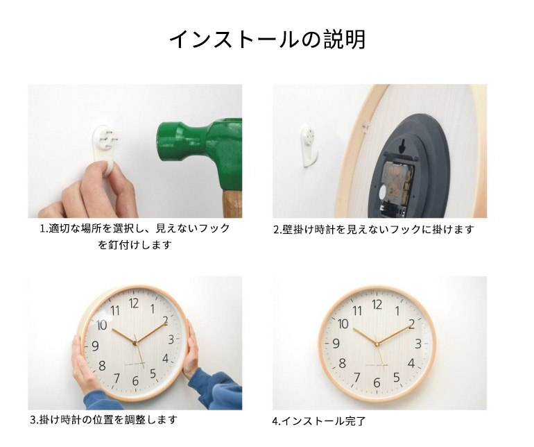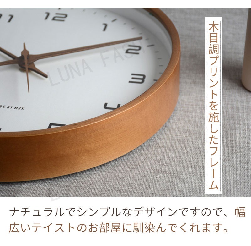壁掛け時計 Wall Clock 木枠 壁掛け シンプル 部屋装飾 クロック インテリア 非電波 ウォールクロック インテリア 大きい ナチュラル シンプル スイープ 大数字 見やすい