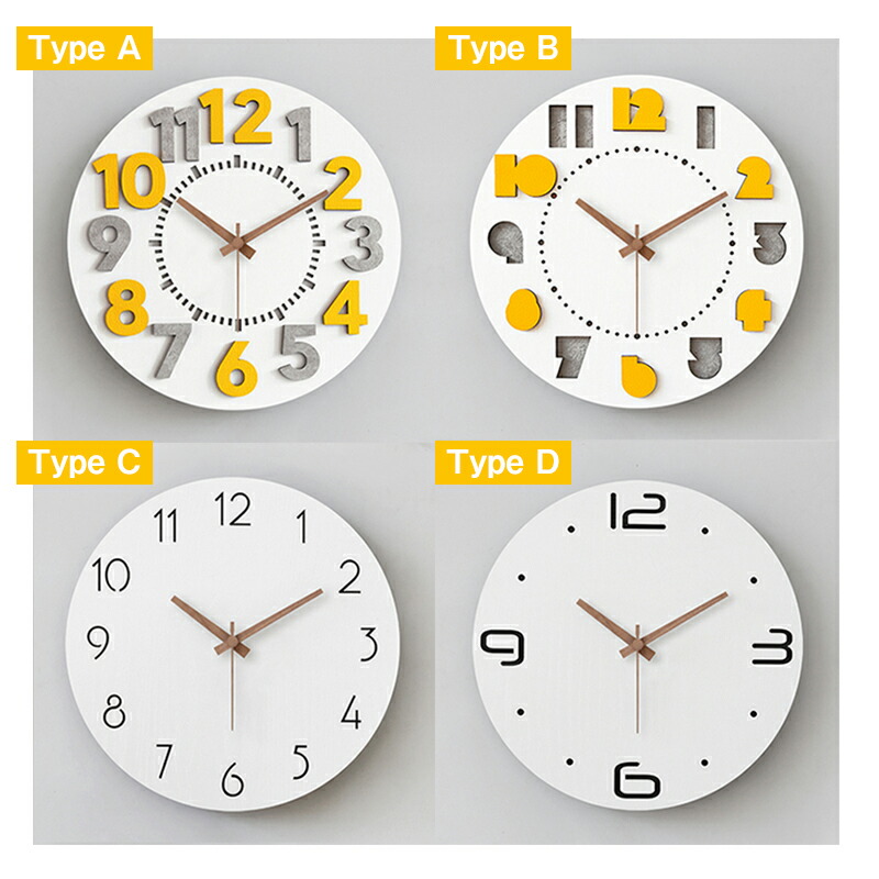 壁掛け時計 おしゃれ 木製 掛け時計 12インチ(30CM) 15インチ(38CM) typeA typeB typeC typeD