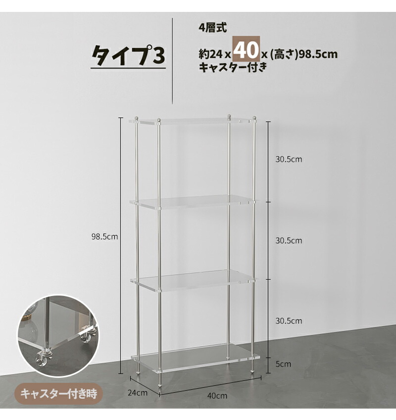 アクリルラック 透明 ラック おしゃれ タイプ1 タイプ2 タイプ3 タイプ4 タイプ5
