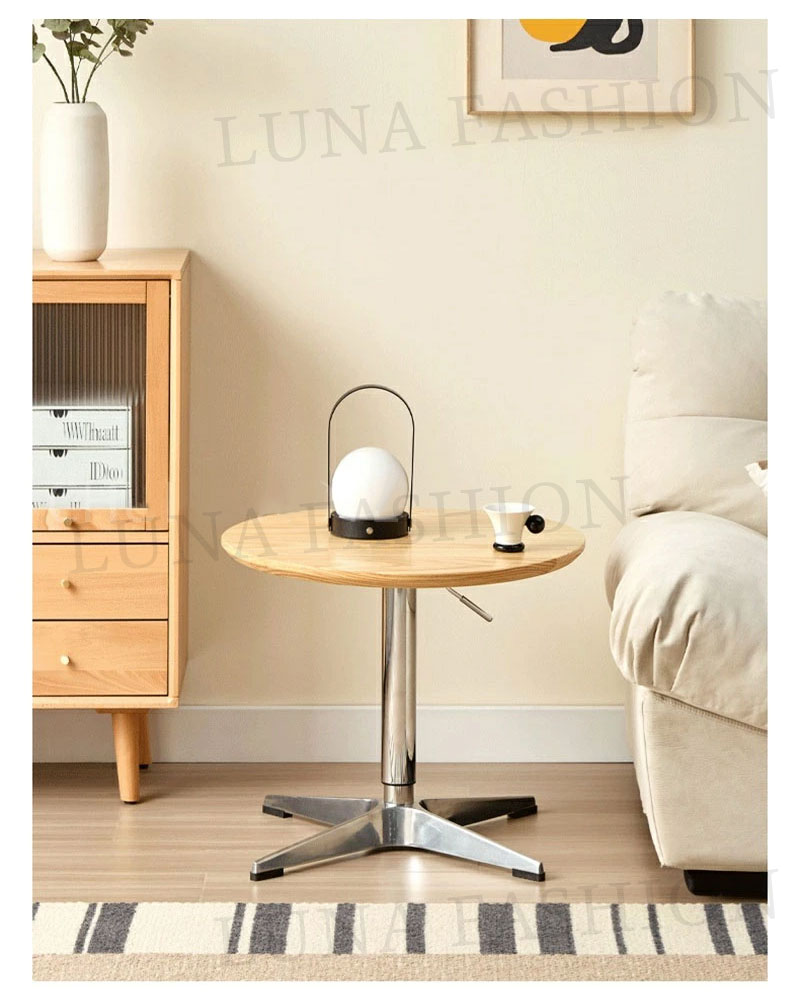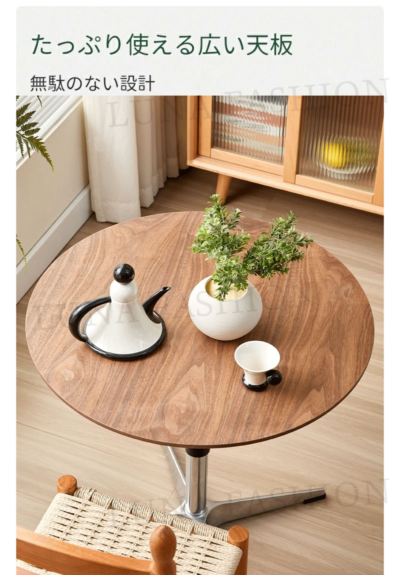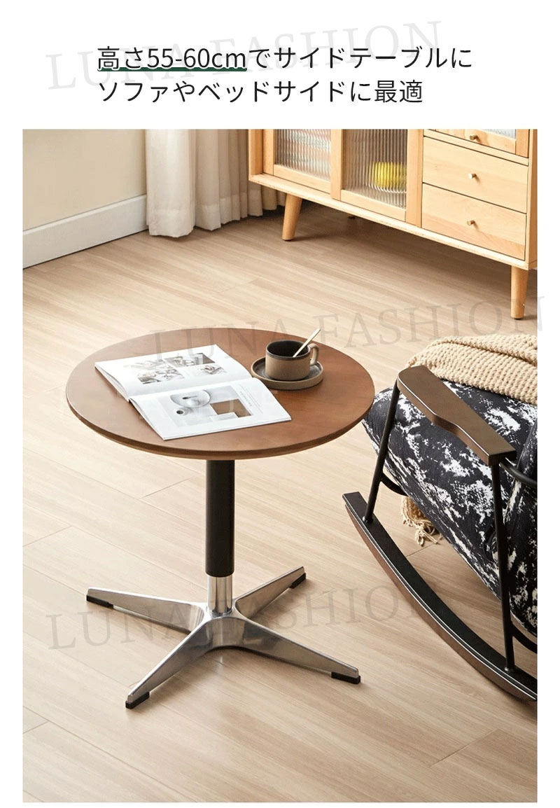 昇降式 ラウンドテーブル サイドテーブ MDF 突板 パイン 原木色 ブラウン ホワイト ホワイト(黒エッジ)