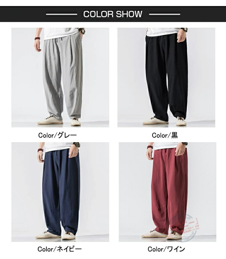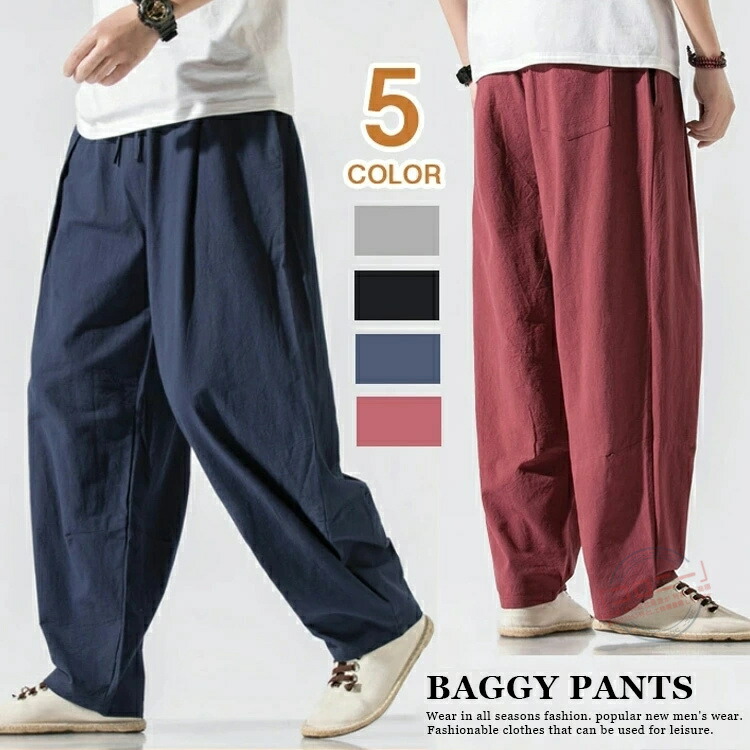 ワイドパンツ メンズ バギーパンツ ゆ ズボン パンツ 新登場! 黒 グレー ネイビー ワイン M L XL 2XL 3XL 4XL 5XL