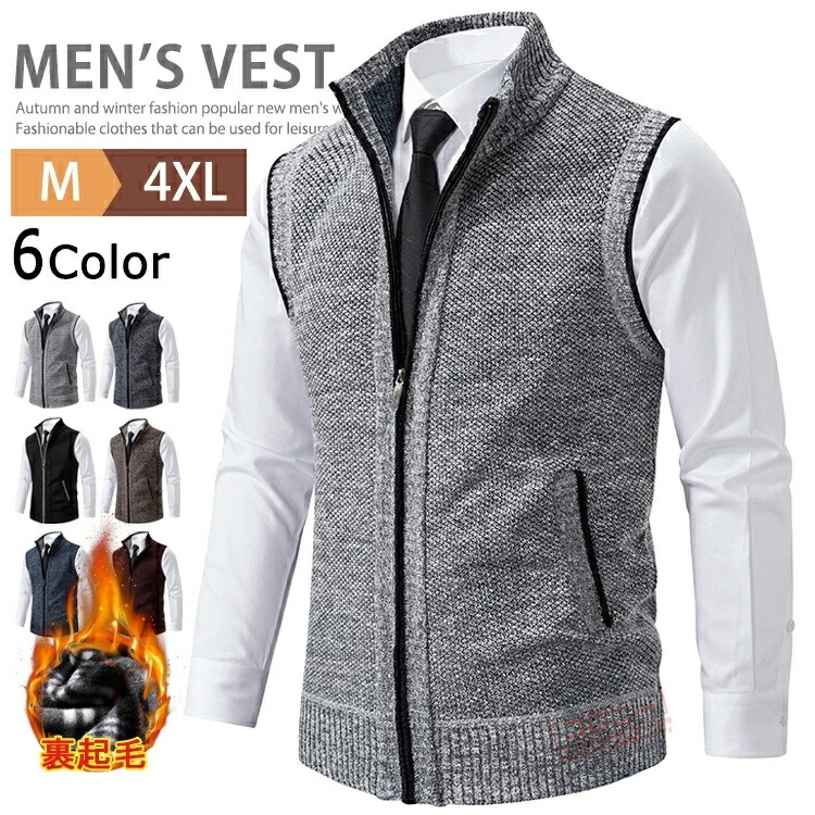 ベスト ニットベスト メンズ 裏起毛 メンズファッション 豊富 M L XL 2XL 3XL 4XL レッド コーヒー ブルー ライトグレー ダークグレー 黒