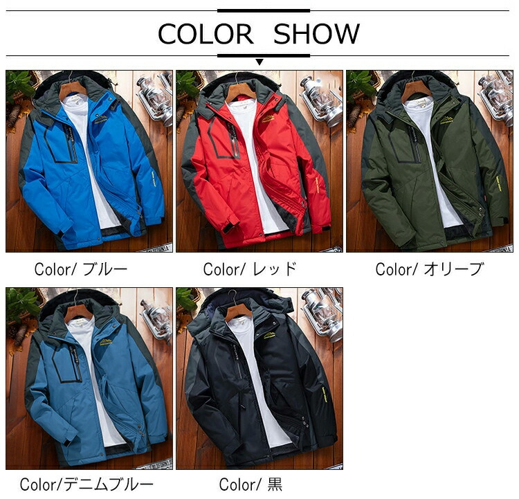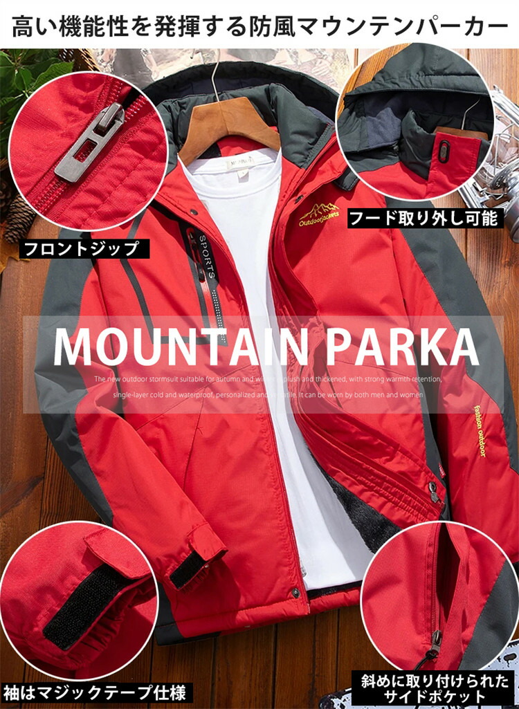 マウンテンパーカー メンズ 防寒 裏起 メンズファッション 新作 M L XL 2XL 3XL 4XL 5XL ブルー レッド オリーブ デニムブルー 黒