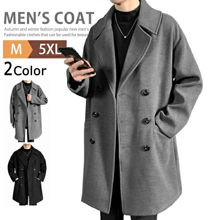 チェスターコート メンズ アウター ロ コート ジャケット 新作 M L XL 2XL 3XL 4XL 5XL 黒 グレー