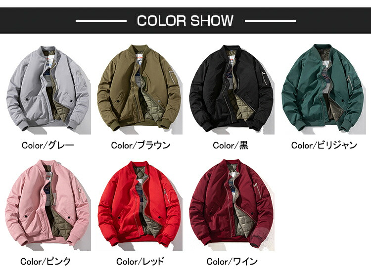 MA-1 メンズ 中綿 ジャケット ア メンズファッション 新作 S M L XL 2XL 3XL 4XL 5XL 黒 ブラウン ピンク グレー ビリジャン レッド ワイン