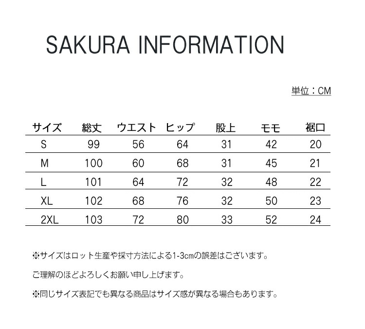 S/M/L/XL(LL)/2XL(3L)サイズ表にご参考まで