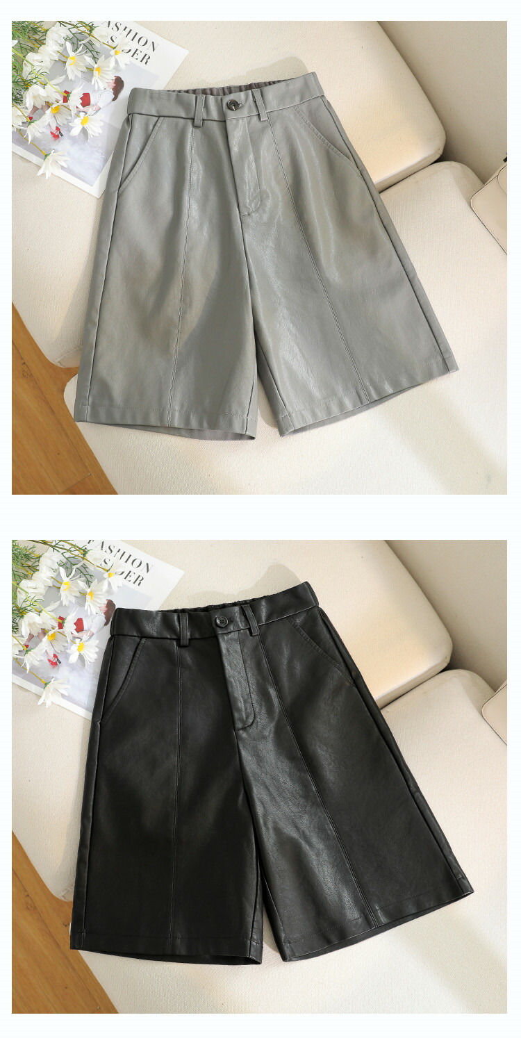 ブラック 黒 灰 グレー クレージュ レディース レディースファッション ボトムス パンツ ズボン ショート丈パンツ ショートパンツ ショーパン ショート丈 ショート ミニ丈 ミニ 短パン 半ズボン ハーフパンツ 短め 膝上 ひざ上 サイドポケット ポケット フロントファスナー フロントジップ ジップ ファスナー チャック ウエストゴム 後ろゴム バックゴム ゴム レザースカート レザー フェイクレザー 合成皮革 皮革 合皮 柔らかい ゆったり 楽ちん 楽チン カジュアル ナチュラル おしゃれ オシャレ 可愛い かわいい きれいめ キレイめ 大人 オトナ 上品 シンプル 春 春服 春物 秋 秋服 秋物 冬 冬服 冬物 服 新作 新着 サクラ SAKURA