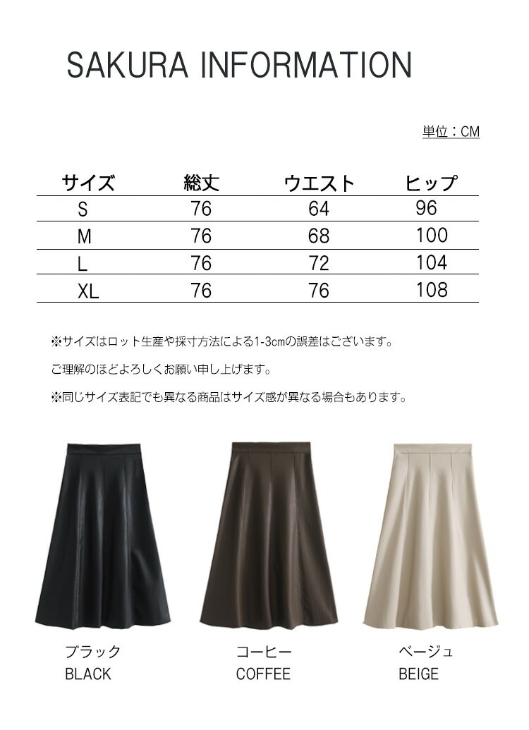 レザースカート レディース ボトムス レディースファッション 特集 黒 ベージュ コーヒー S M L XL