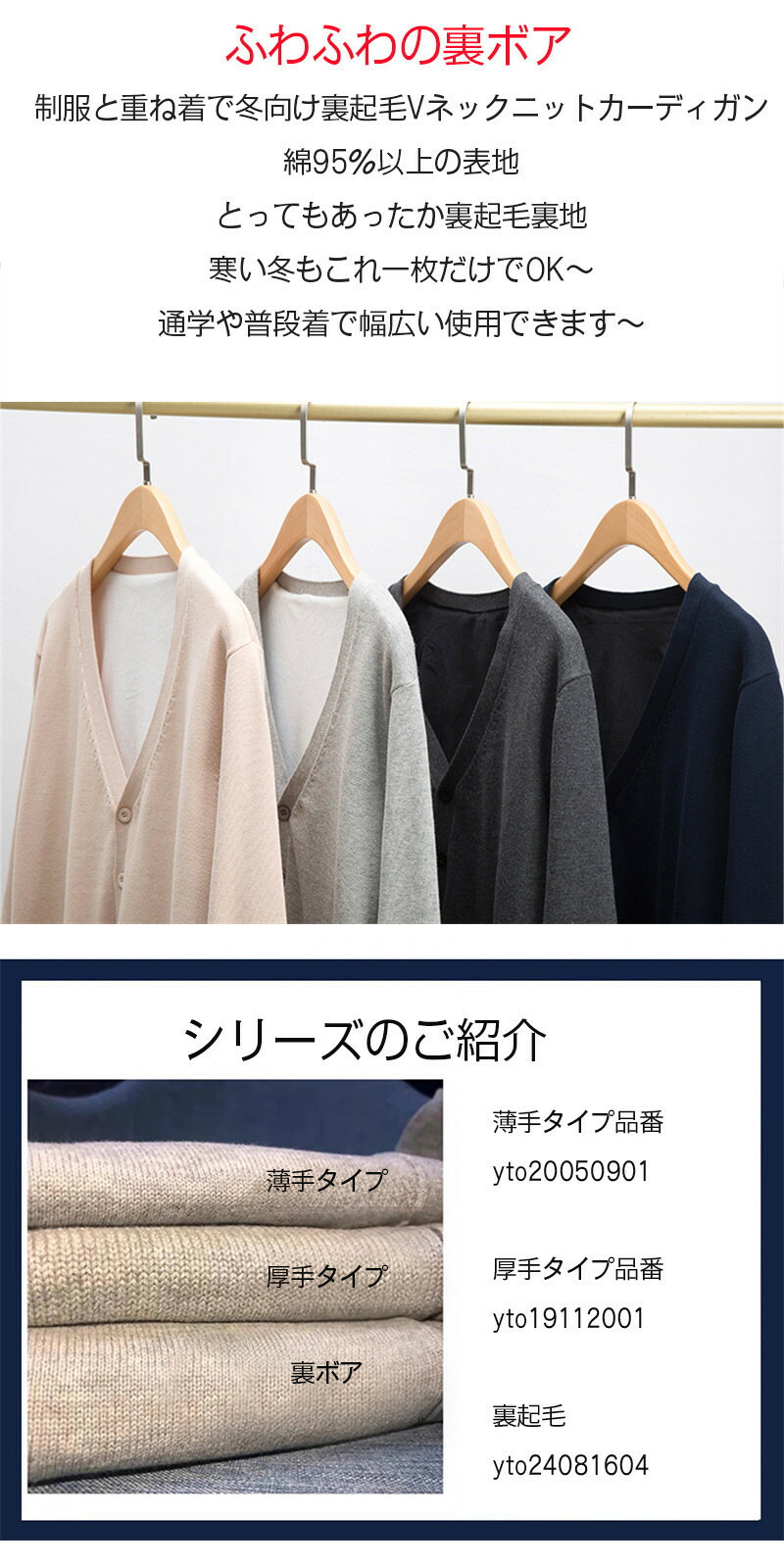 カーディガン 制服 裏起毛 Vネック スクールカーディガン スクール オフィス レディース 秋冬 高校生 学生服 ニット コットン 綿 女の子 メンズ 男の 男女兼用