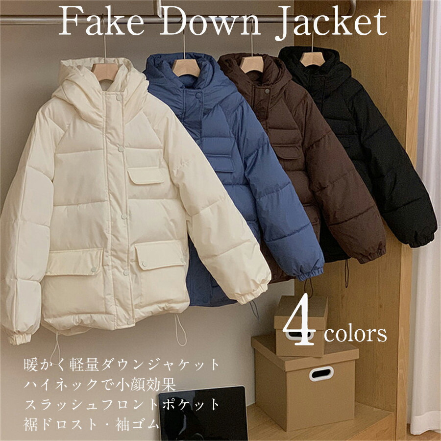 ジャケット レディース アウター コート ミディアム丈 フェイクダイン ショート丈 ダウンジャケット 長袖 長そで 上着 羽織り 軽い 大きいサイズ ゆったり エコダウン ドロスト フードジャケ 防寒