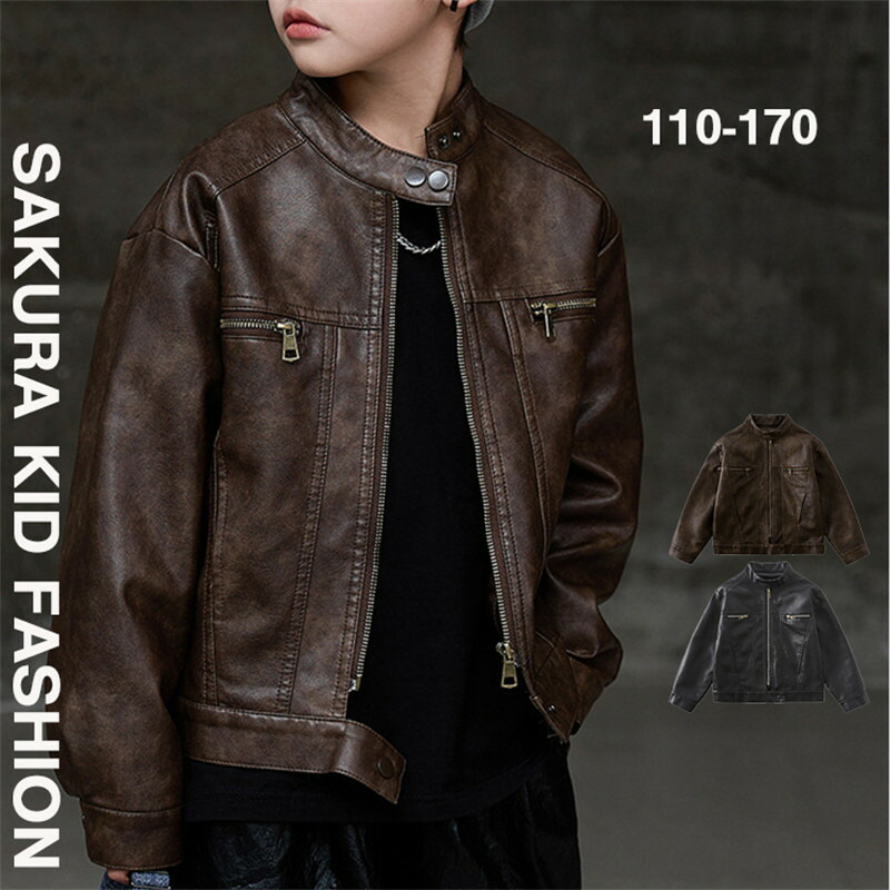 アウター レザージャケット キッズ 男 キッズ コート ジャケット 新登場! ブラック ブラウン ブラック裏ボア ブラウン裏ボア 110 120 130 140 150 160 170