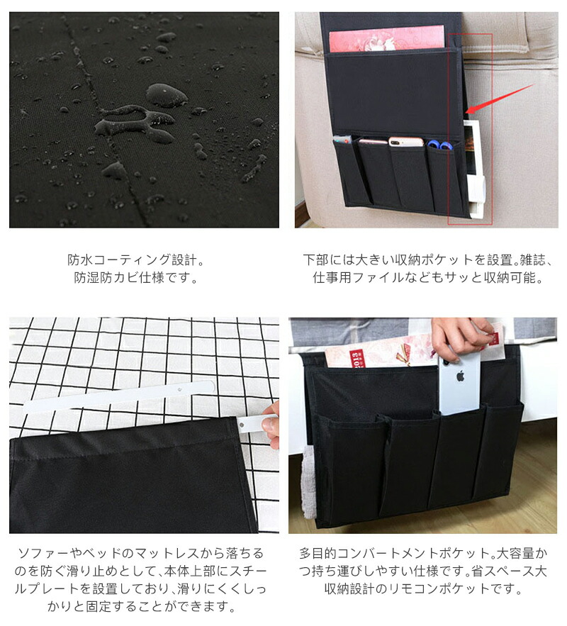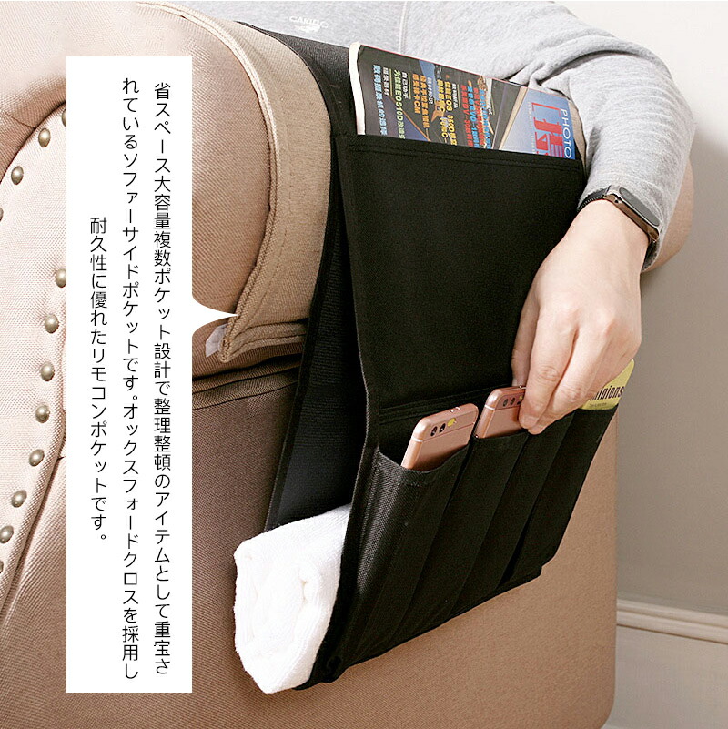 リモコンポケット サイドポケット 収納 ベージュ グレー ブラック 44.5x32.5cm 97x32.5cm
