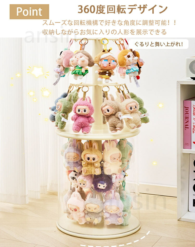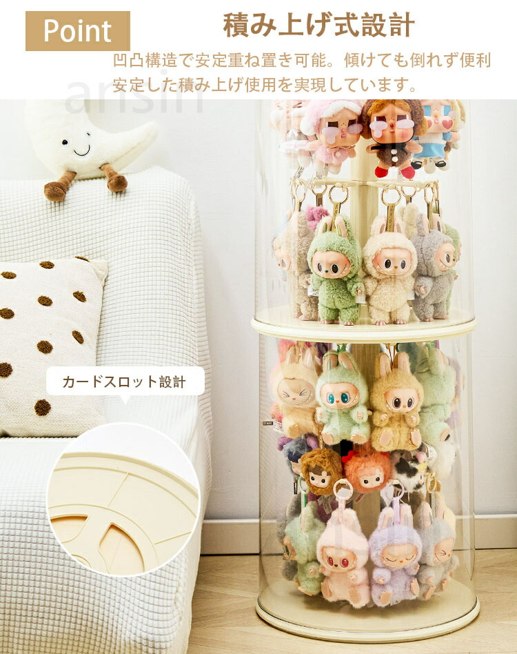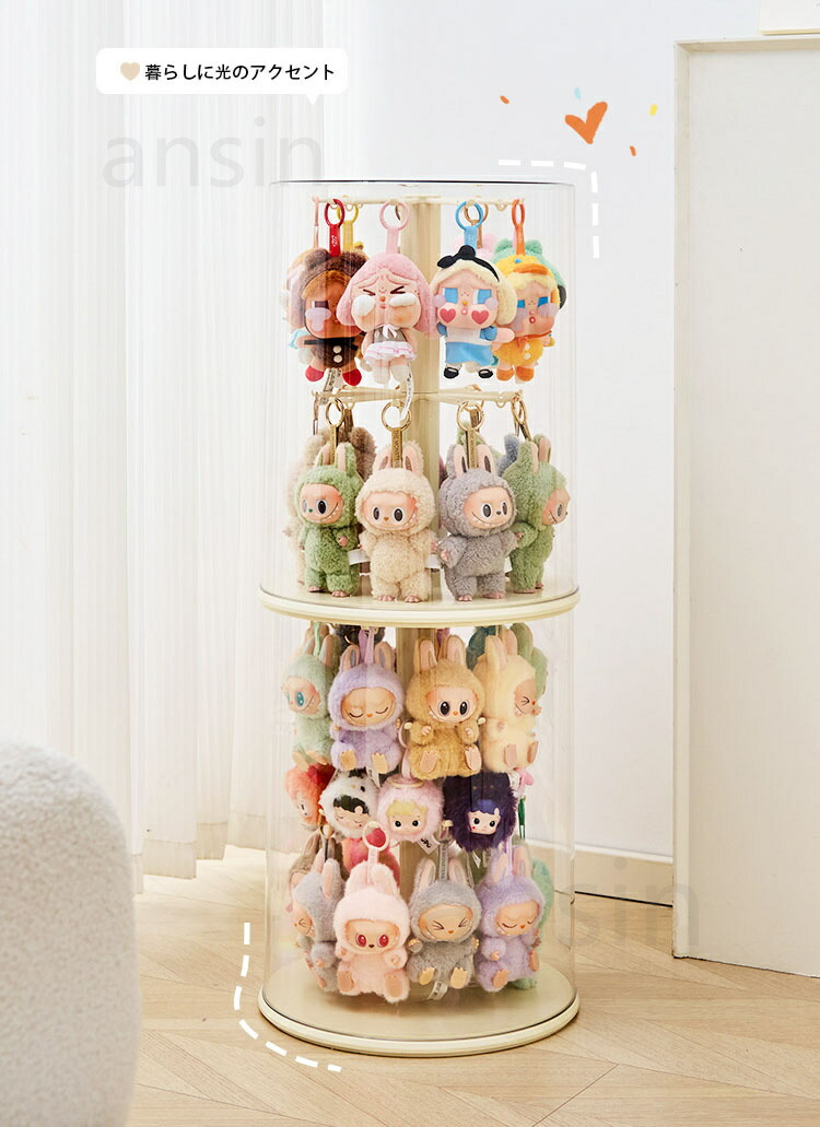 ぬいぐるみ収納ケース フィギュアケース 2段 3段 コレクションケース 透明円柱収納 回転可能 透明 回転式 積み重ね可能 掛けられる 大容量 ケース 子供部屋収納 クリア