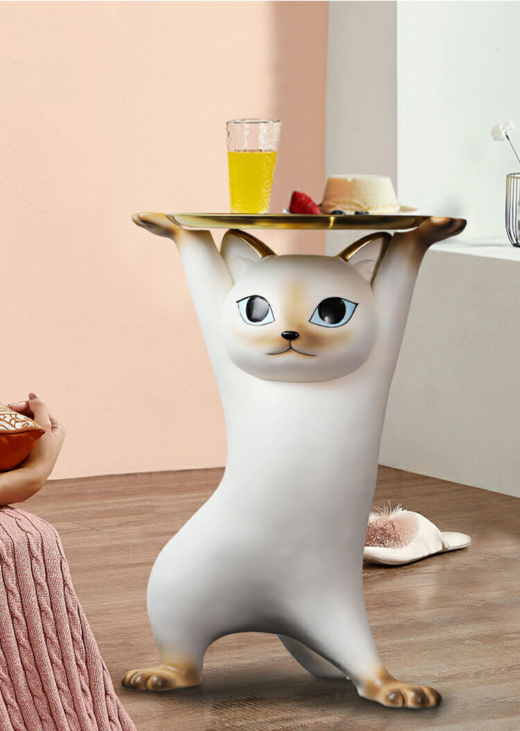 キャットサイドテーブル サイドテーブル ホワイト ブラウン 金属(ダブルトレー) ガラス(シングルトレー) ガラス(ダブルトレー) S:高さ62CM M:高さ72CM 高さ58cm