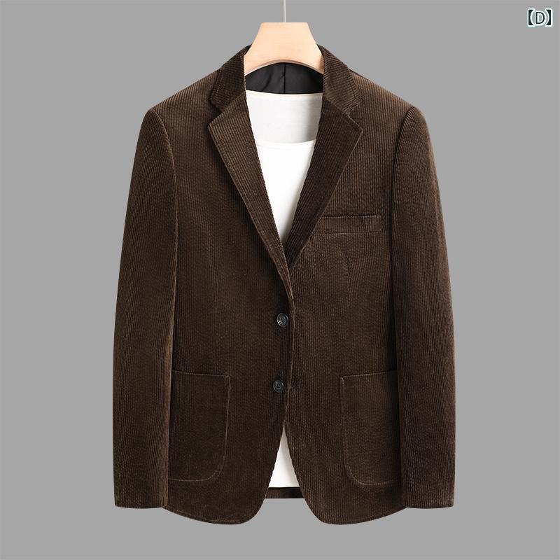 テーラードジャケット メンズ コーデュロイ アウター カジュアル スーツ 秋冬 韓国 レトロ 厚手 グレー ブラック ブラウン 大きいサイズ