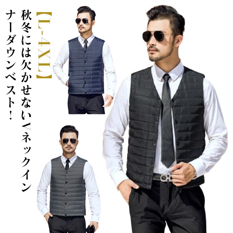 ベスト メンズ 中綿 インナーダウン トップス ベスト ジレ 豊富 ブラック グレー ネイビー L XL 2XL 3XL 4XL