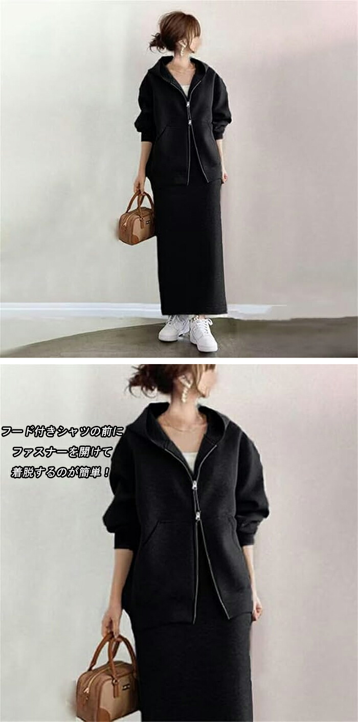 フードパーカー セットアップ レディー レディースファッション 豊富な品揃え ブラック グレー ベージュ S M L