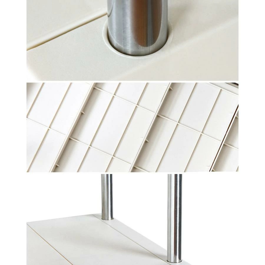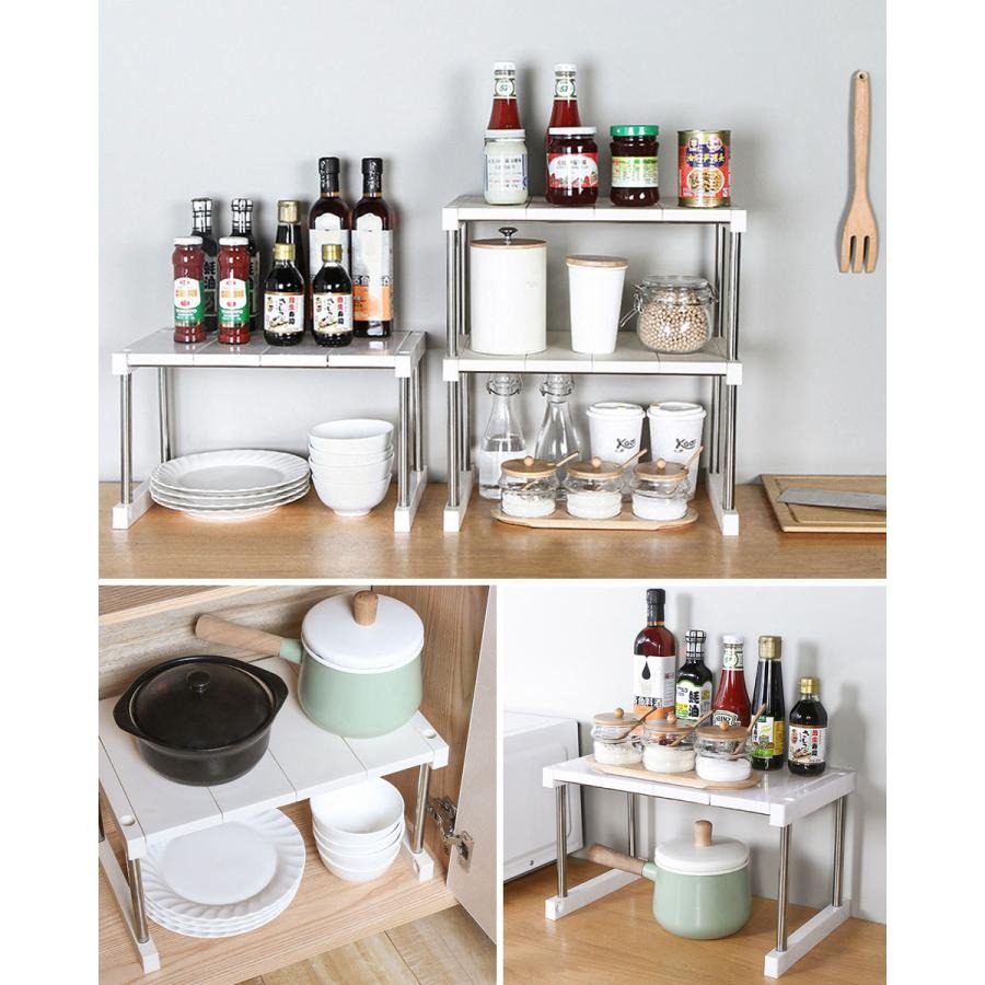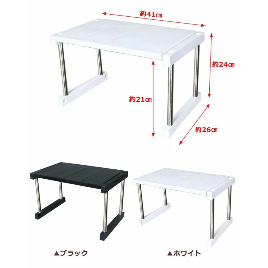商品について【スペースに合わせて有効活用できる収納棚】 キッチンや洗面所、化粧台などの卓上はもちろん、リビングや廊下、玄関などの床上のスペースを有効活用して、小物を収納できるラックです。サイズが合えば、シンク下のスペースも整理整頓できるラックです。 【調味料やお皿などをキレイに収納できるラック】 調味料や小皿など、キッチンに数多くの小物があります。そんな多くの小物を収納できる収納ラックです。上下に物を収納できるので、空間を活用して、見た目もキレイに収納することが出来ます。効率良く、お料理をするためには整理整頓が必要です。 【洗面所の化粧品もキレイに収納できるラック】 上下に収納できるので、上の段にはよく使う化粧品を置いて、下の段には、たまに使うものや、タオルなどを収納しておけば、使い勝手の良い収納棚が出来上がります。 【丈夫で錆びにくいステンレス脚のラック】 脚部は、丈夫で錆びにくいステンレスを採用した収納ラック。プレートにも梁をつけているので、耐久性の高いラックです。 【玄関で靴収納にもオススメのラック】 耐久性の高い素材を採用しているので、下駄箱に入りきらないスニーカーなどの靴を収納するのにもオススメの収納ラックです。