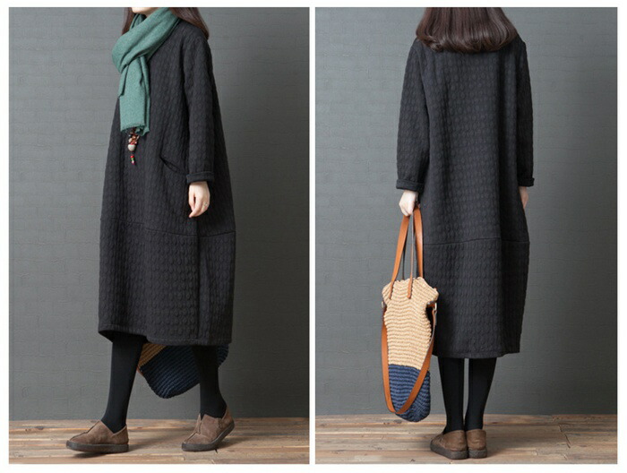 ワンピース レディース 長袖 ロング丈 ワンピース 続々登場 グリーン ブラック M L XL