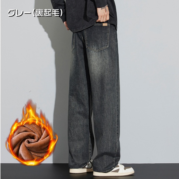 裏起毛 ワイドデニム デニムパンツ 暖 ズボン パンツ 新登場! ブルー(裏起毛無し) グレー(裏起毛無し) ブルー(裏起毛) グレー(裏起毛) 29 30 31 32 33 34 36 38