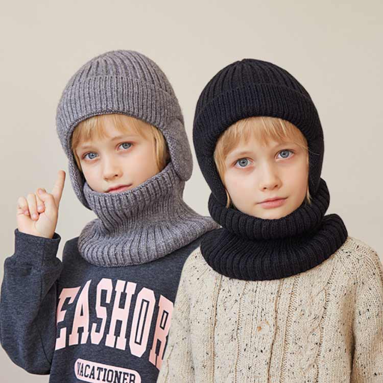 2点セット ニット帽 ネックウォーマー キッズ 帽子 ニット帽 続々登場 ライトグレー ネイビー ダークグレー ブラック コーヒー