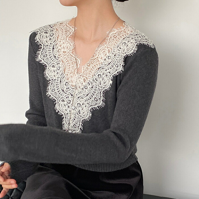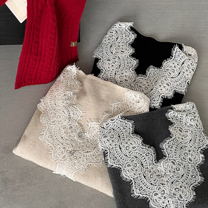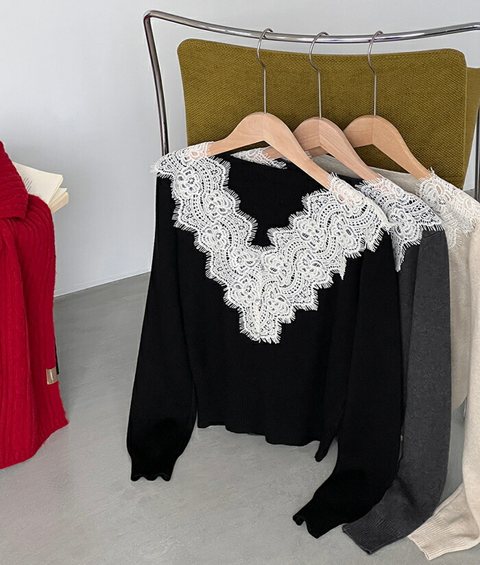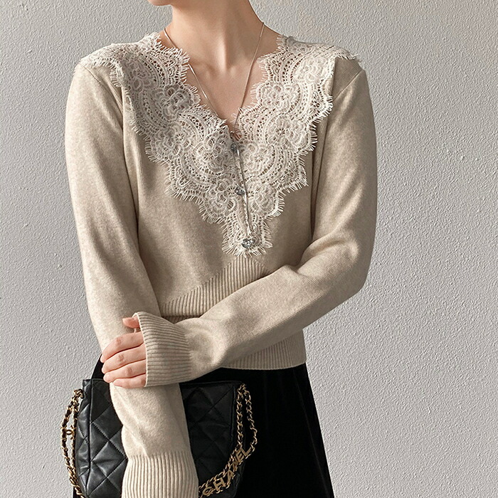 ニットセーター インナー レディース Vネック 襟レースデザイン ニット ニットインナー トップス 長袖 セーター 長袖セーター プルオーバー ニットソー インナー 秋 冬 ショート 秋冬 薄手 無地 ふわふわ シャギーセーター もこもこ 柔らか 暖か 繊細 レースフリル ニットセーター エアリー 質感 薄手 暖かく 重ね着 肌触り 抜群